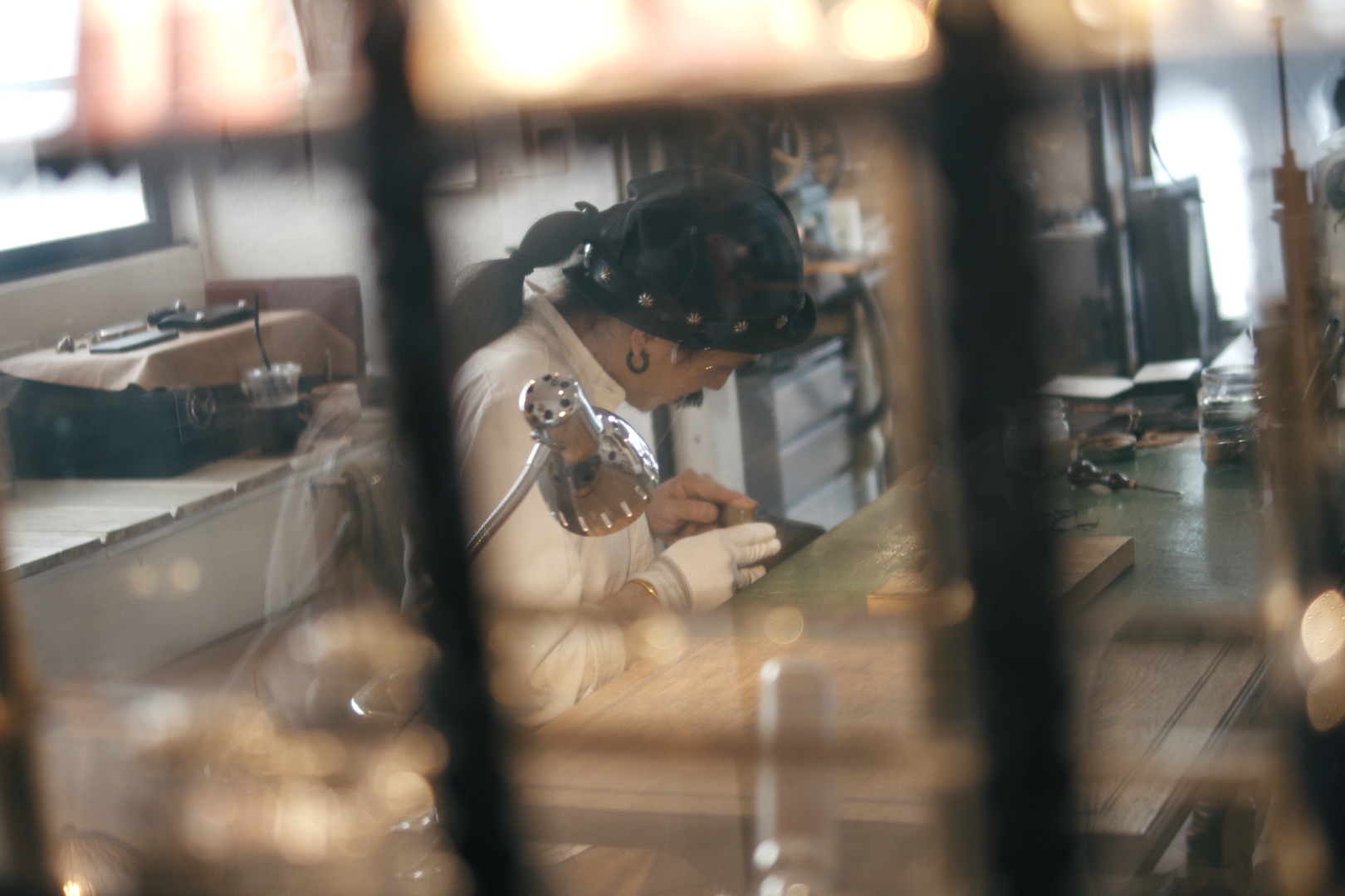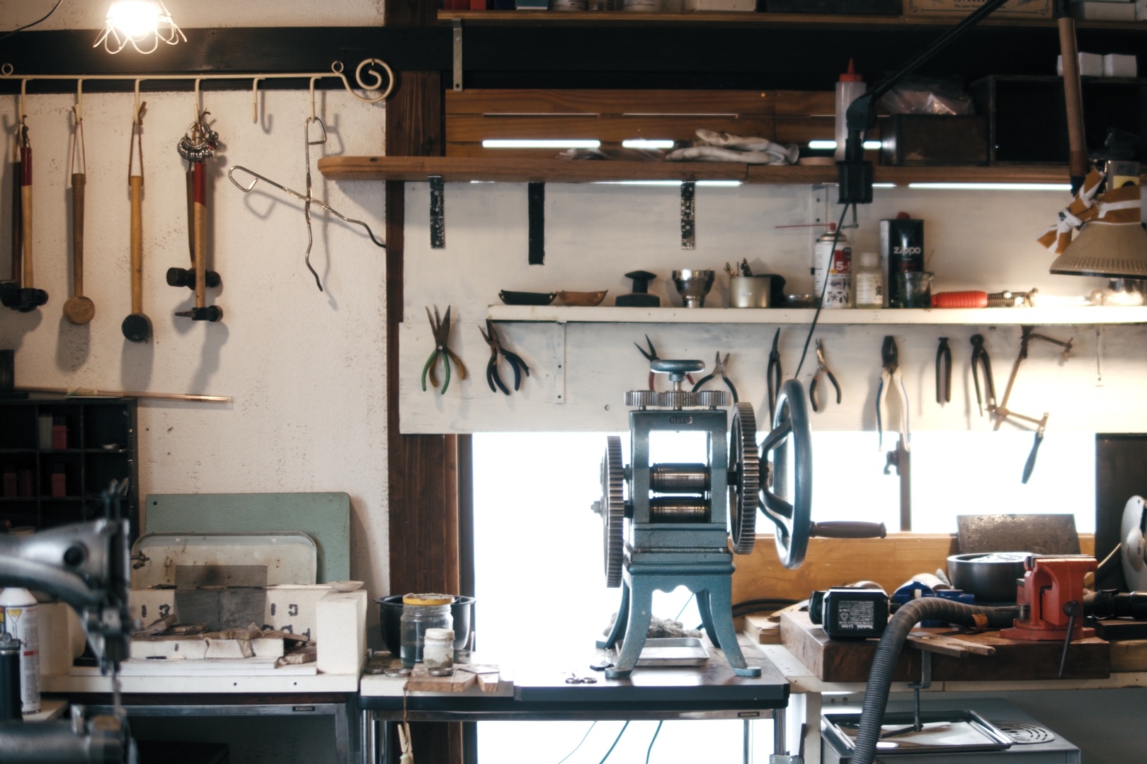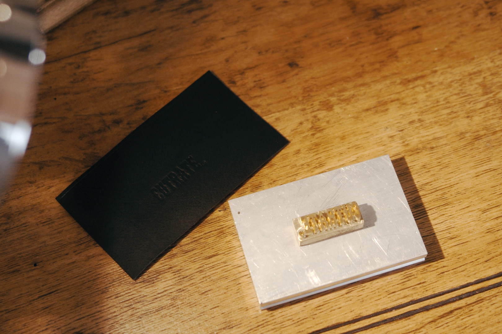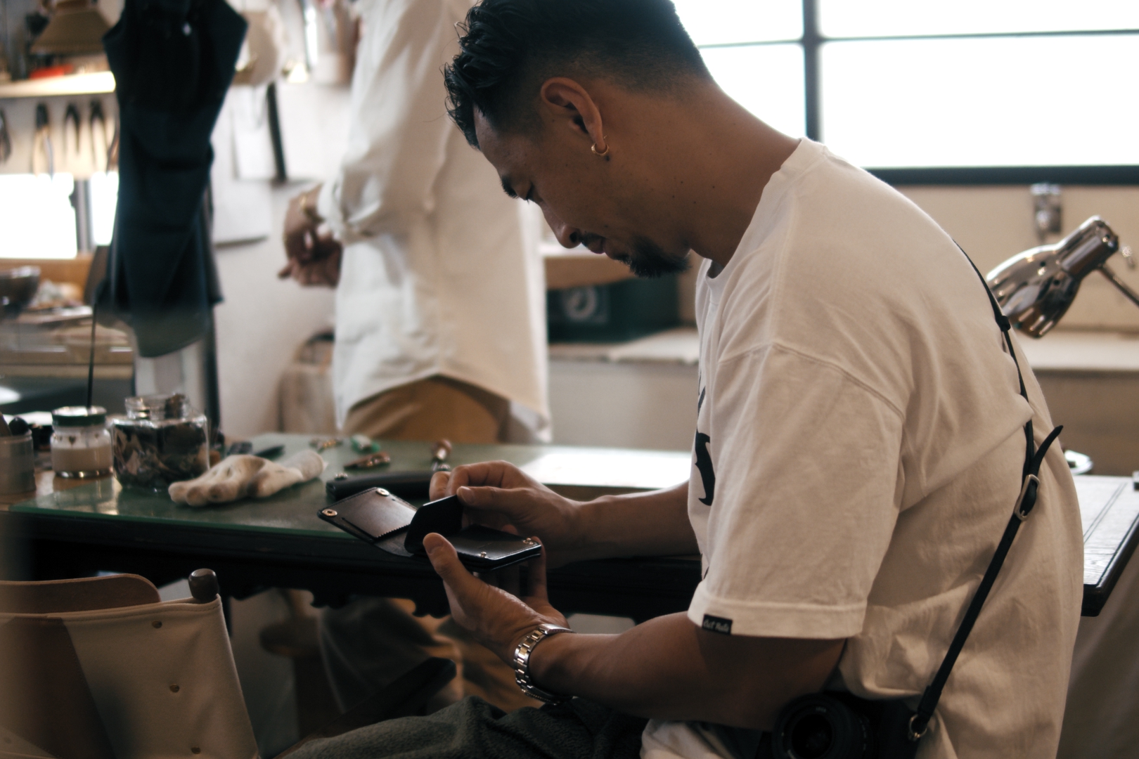彼との出会いは約1年前、長崎の友人の結婚式に出席した際、10数年ぶりに会う長崎のセレクトショップの元店長に紹介され たのが初めての出会いでした。彼は東京にてジュエリーやレザークラフトをしていると話していたのを、何となく覚えており ます。また、ゆっくりとした話し口調や独特な佇まいに、お洒落な印象を受けたのも覚えていました。 最初の出会いから数ヶ月後、カットレイトを自分の手でリニューアルすることとなり新たな物作りをする為、生産先の工場や 業者を一新していく中でふと、以前紹介されたことを思い出し久しぶりに会うことに致しました。変わらない彼の独特な雰囲 気と、物作りの姿勢やきめ細かい作品に自ずと惹かれ、お互いに共同で作製することにさほど時間はかかりませんでした