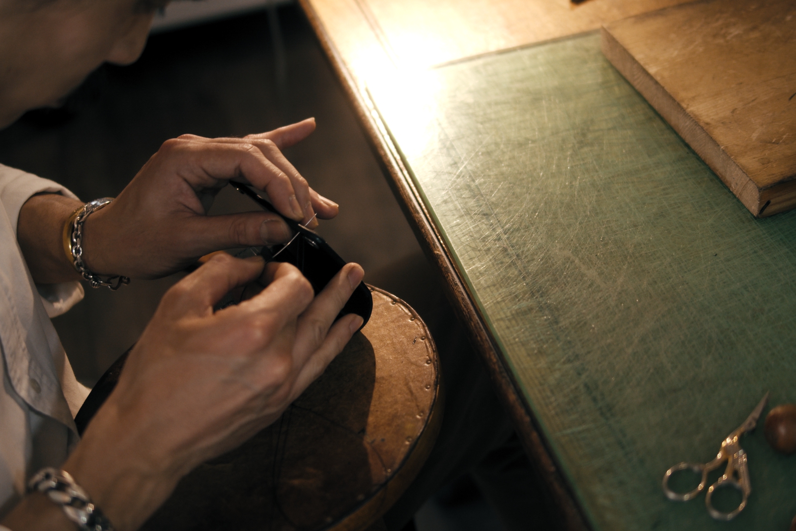 まず初めにブランドイメージから彼はシボ感のあるイタリアンレザーを勧めてくれましたが、自分の中では今までによく使っていたこともあり、敢えて自分なりの新鮮さを求め、上質でコシの強いプレーンなイタリアンレザーを使用することに致しました。国産レザーとは違いシワになりづらいのもチョイスの理由でもありました。
