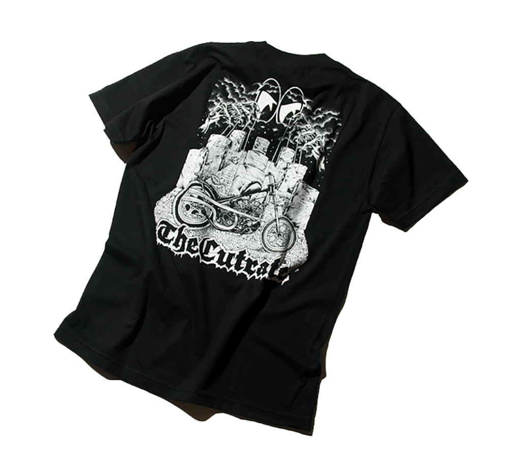 MADE IN U.S.AのTシャツになります。左胸にワンポイントでプリントが入りバックにはバイカーズなグラフィック性の強いアイテムとなっていおり、ハードなグラフィックがプリントで入りインパクトある作りとなっております。サイズ感はアメリカ企画になりますので、ワンサイズ上のサイズ感となっており、Sサイズが日本のMサイズになります。