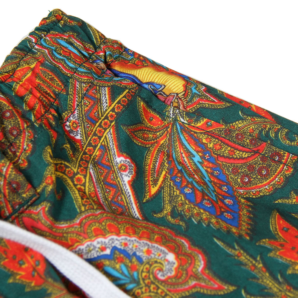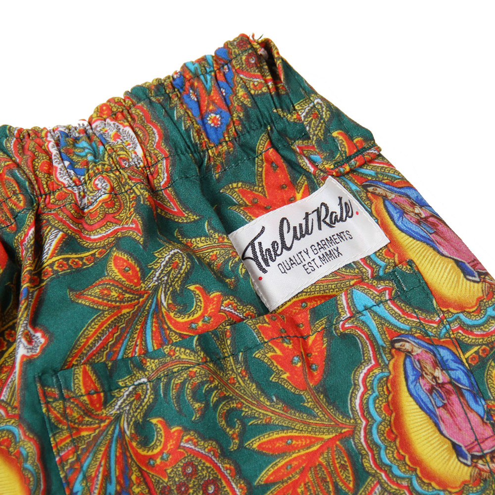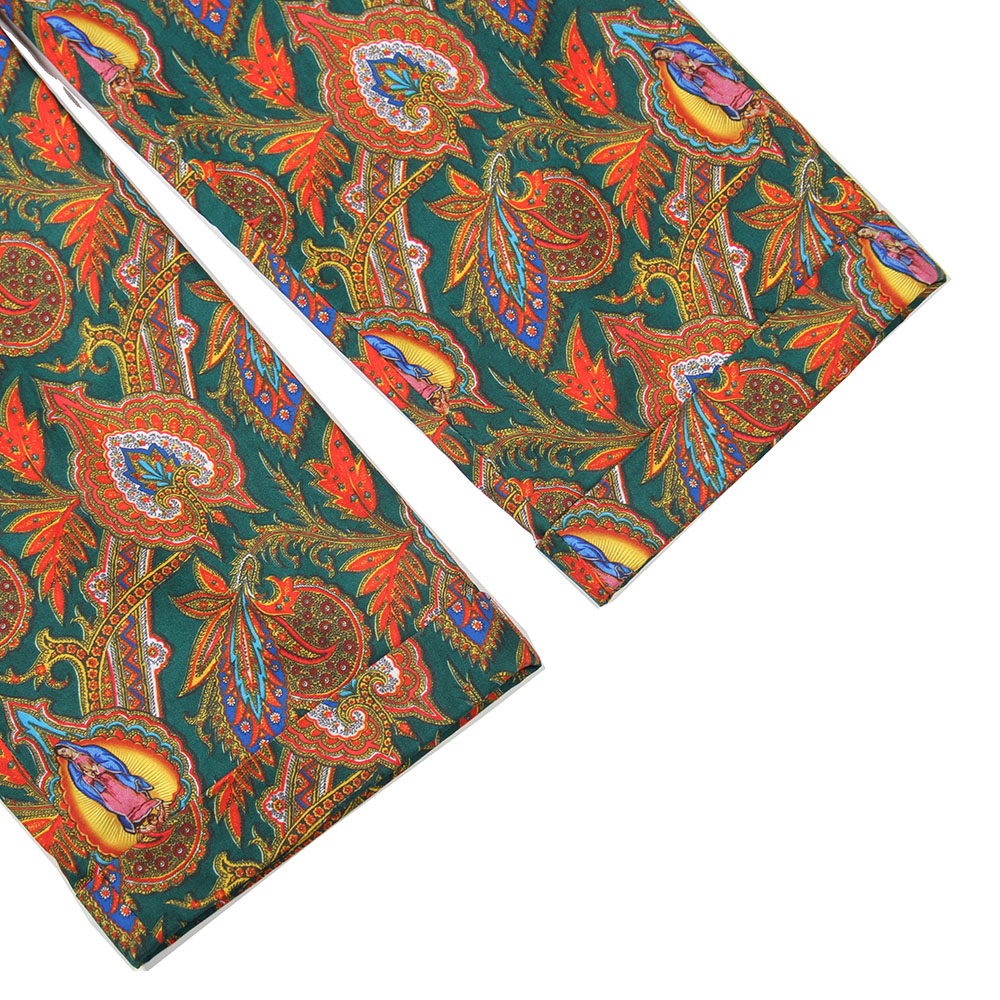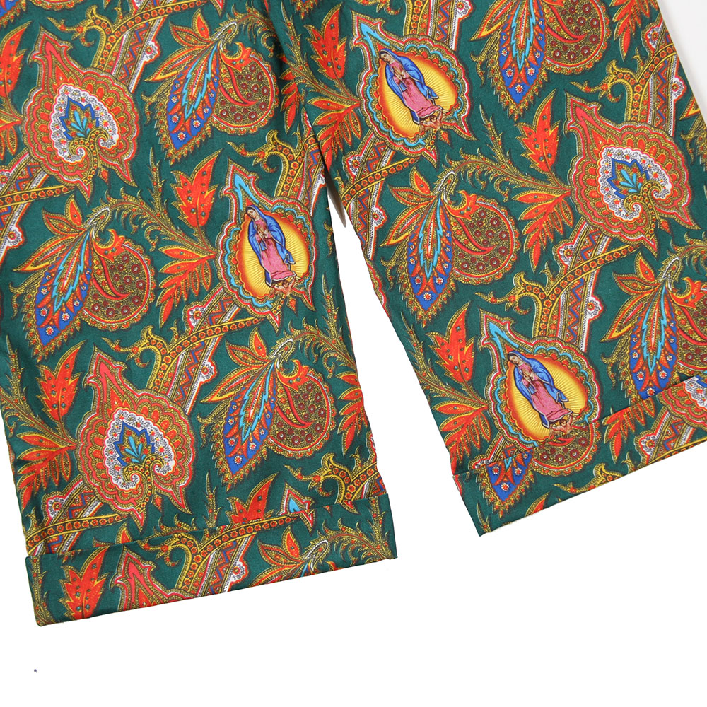 カットレイトのオリジナル総柄。今回はペイズリーにマリアを合わせたスペシャルな柄を作製。洗いや、経年変化を踏まえコットン100%ボディを採用。ゴム入りベルトループ付きイージーパンツ。テーパードは緩めのストレートタイプで。
