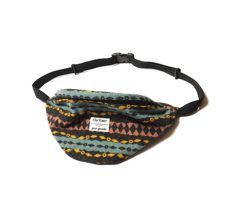 オリジナルで作製されたボーダーの生地を使用して作製されたファニーパックになります。ちょっとしたお出かけの際などにも持ち運びしやすいサイズ感となっており、タウンユースは勿論、スケートシーンなどでも活躍してくれるアイテムとなっております。また、総柄のデザインでスタイリングのアクセントとしても重宝するのではないでしょうか。
