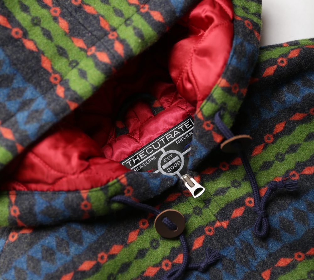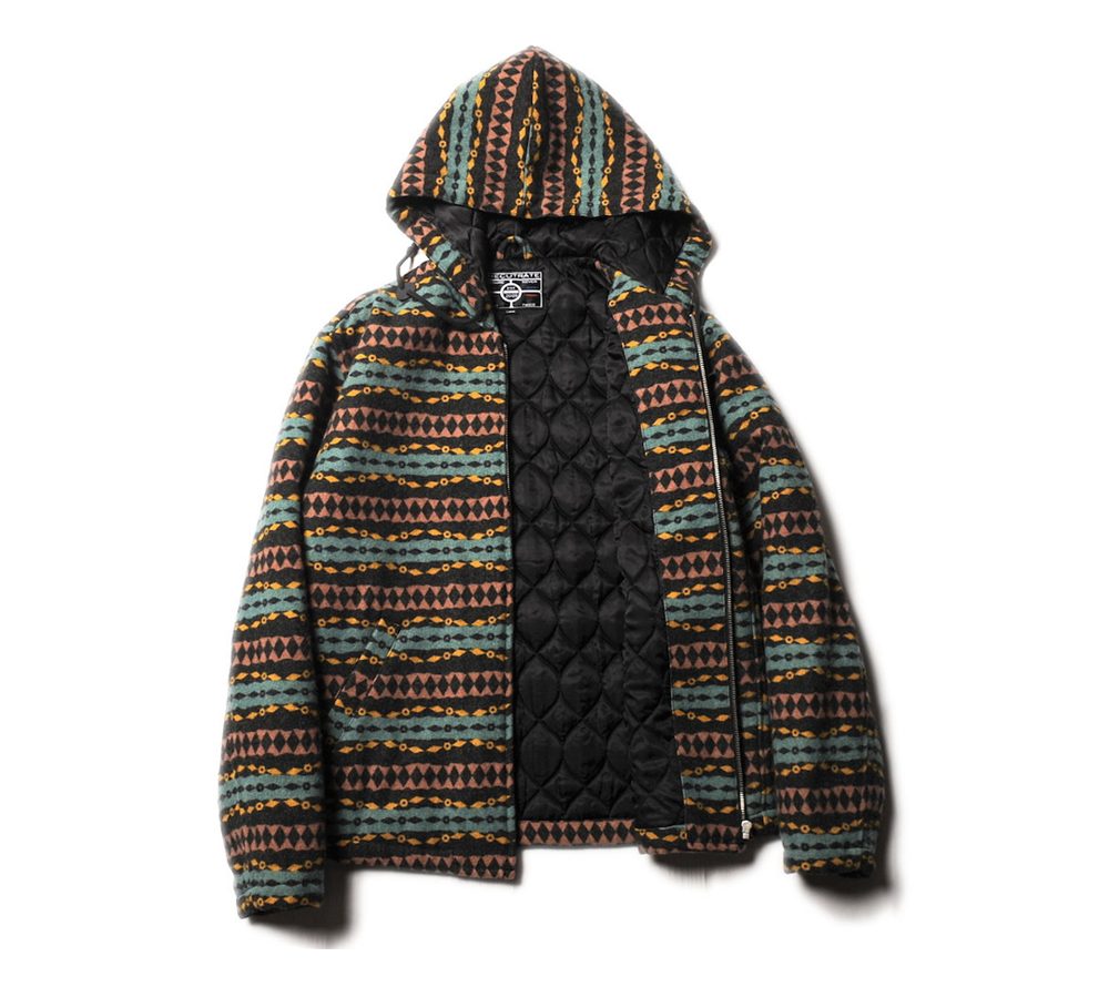 オリジナルのネイティブボーダーパターンを使用し、作製されたフーデットジャケットになります。生地はライトメルトンを使用し、中綿キルトを施したジャケットになります。オリジナルのネイティブボーダーが映えるジャケットに仕上がっております。また裏地にはキュプラを使用し、袖通しもし易い仕上がりとなっております。
