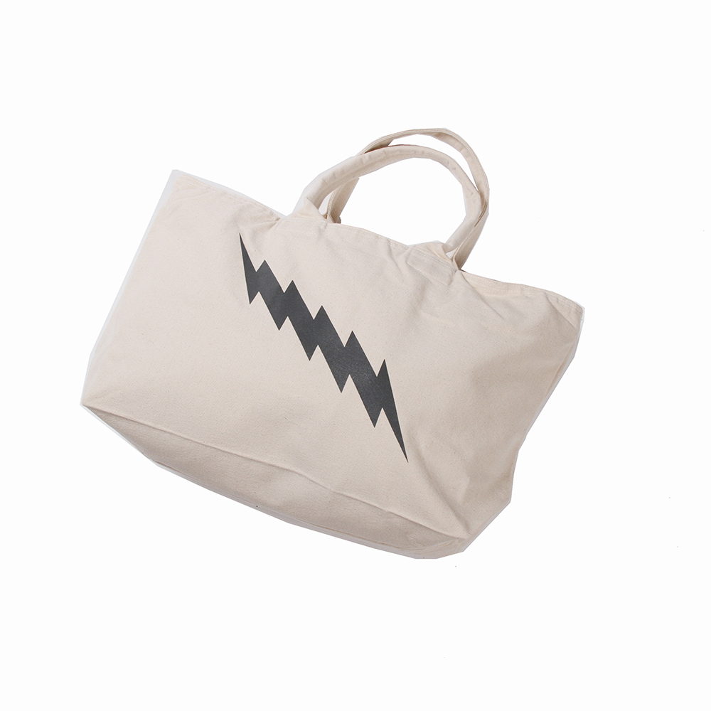 しっかりとした頑強なキャンバス地を使用したビッグサイズジップトートバッグ。インナーにも小物ポケット付きにて収納性も兼ね備えております。フロントには、カレッジ風ロゴ、バックにはサンダーボルトをプリント。アメリカンニュースペイパーバックをイメージした、トートバックを作製。 今回はGRAYにBLKのレイダースカラーにてリリース。旅行や買い物の際に是非。