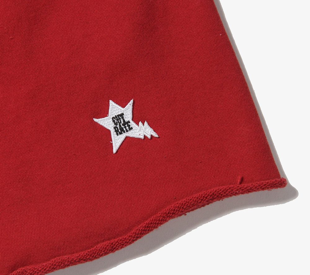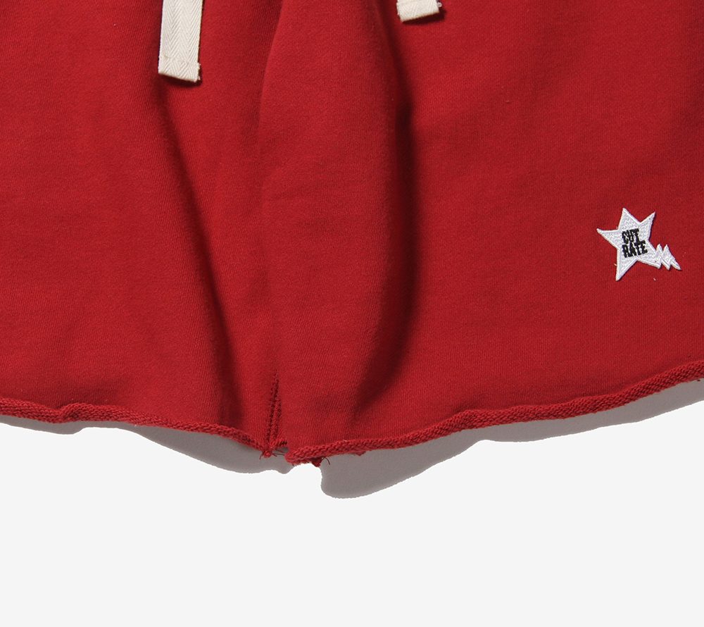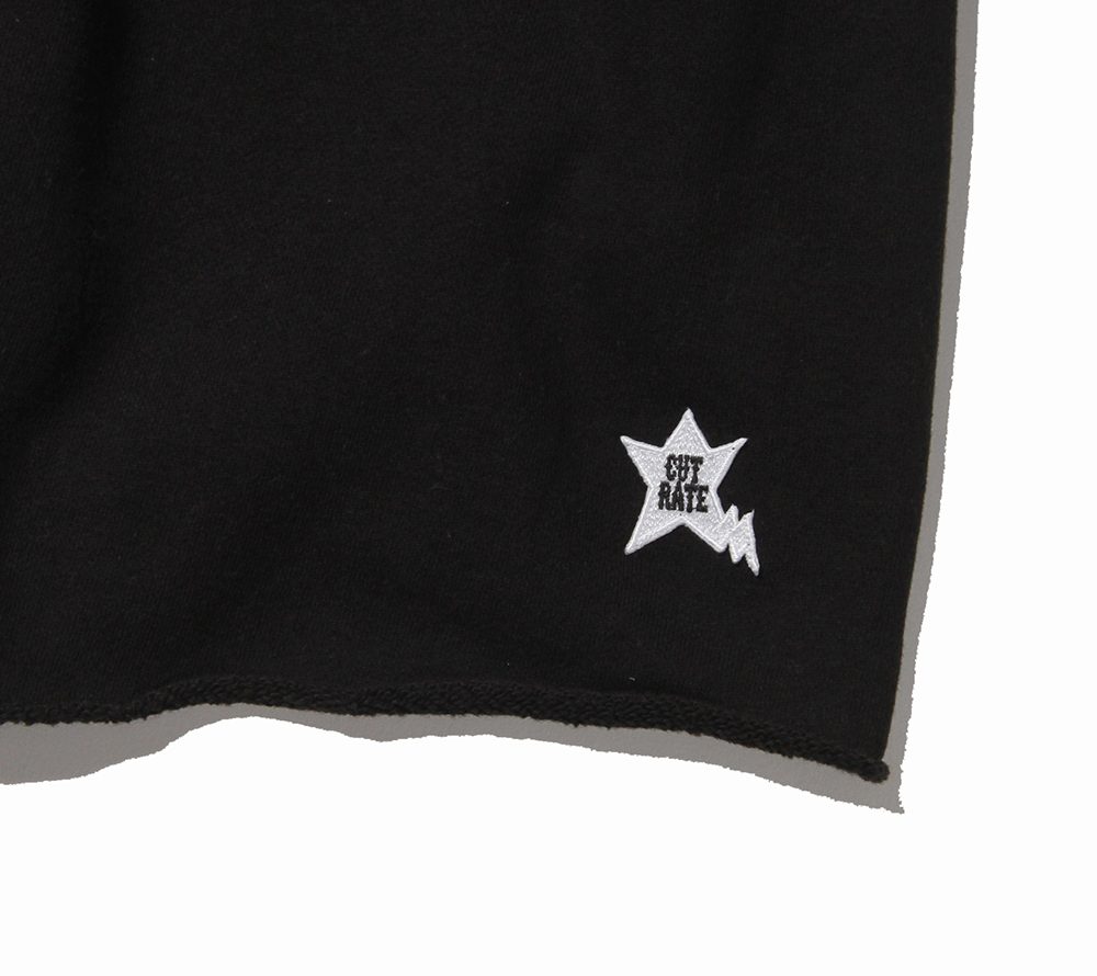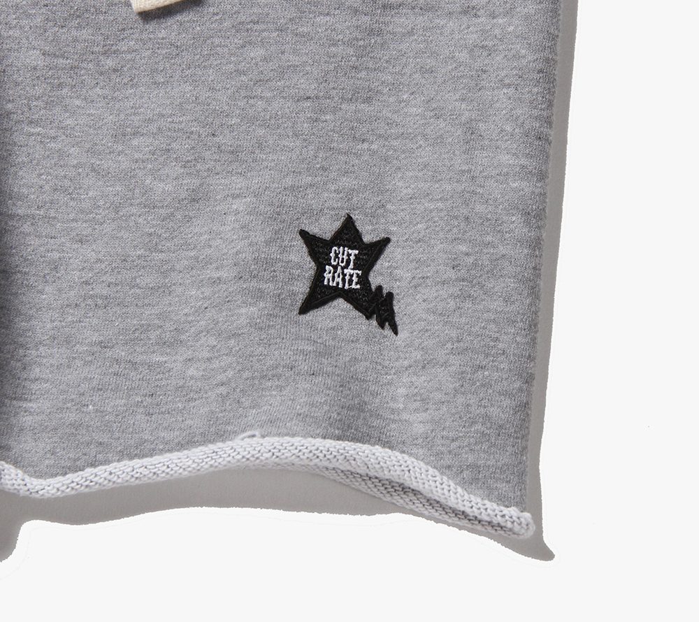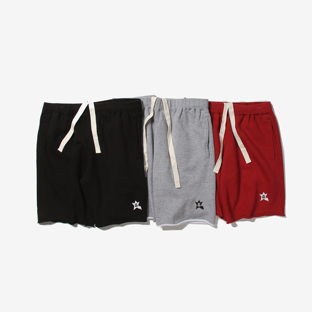 ワンウォッシュ、裾をカットオフ仕様、オリジナルスターのワッペンをオンしたコットンボディのスウェットショーツ。是非、気軽に来て頂きたいアイテム。