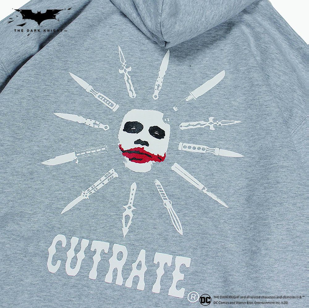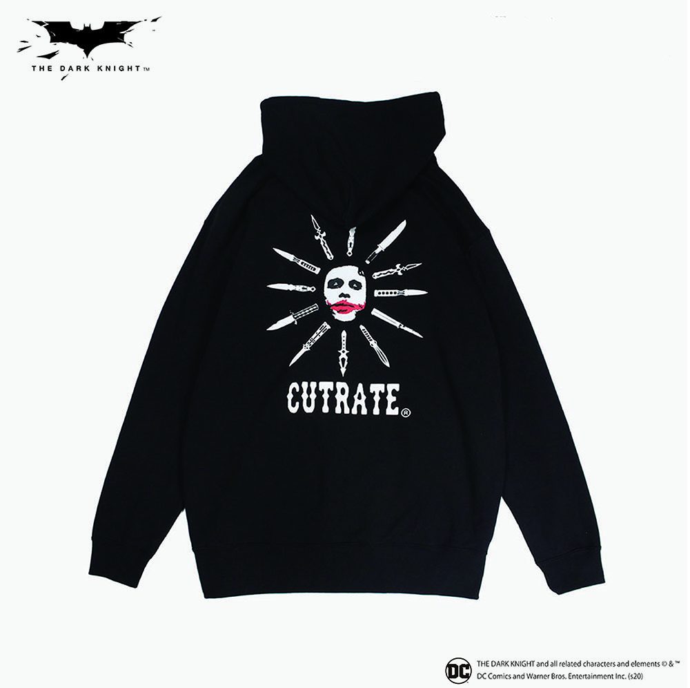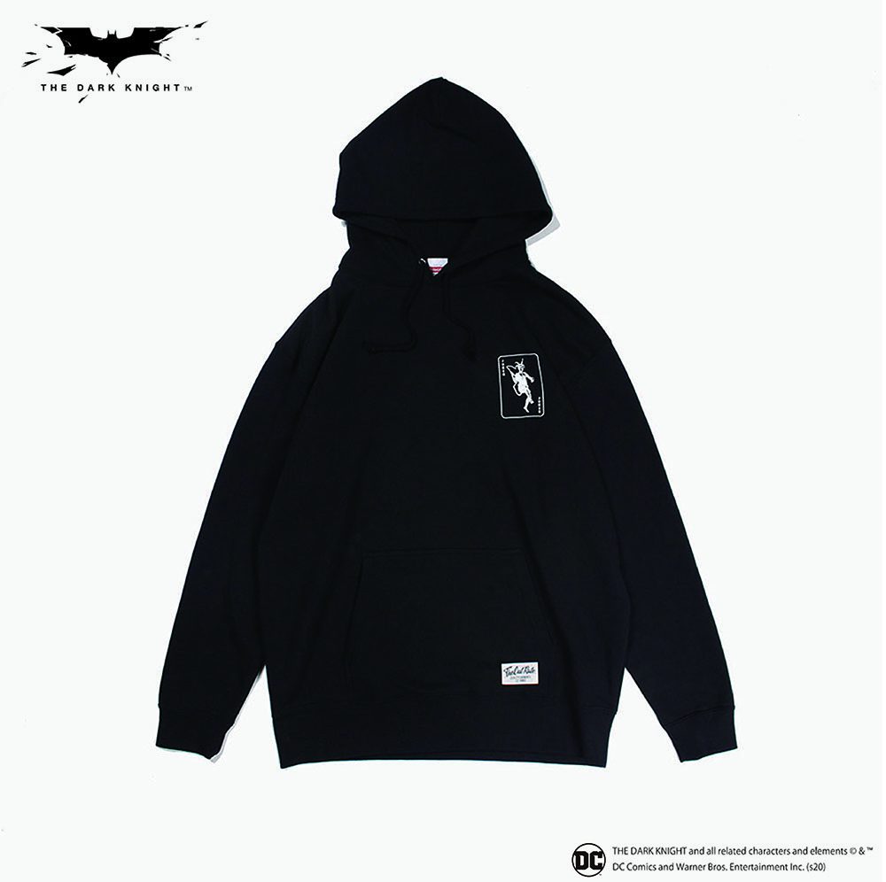 DC作品に登場する悪役"THE JOKER"とのコラボアイテム。 コットン100%の裏起毛したスウェットパーカーをボディに、フロントにはトランプのジョーカーをプリント、背面にはナイフと”JOKER”の顔のデザインにブランドのロゴをミックスしプリント。印象の強いアイテムに。12月27日12時より発売開始。