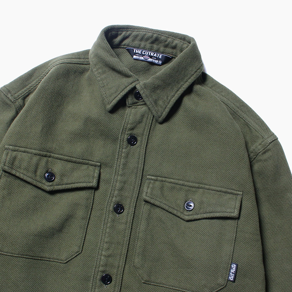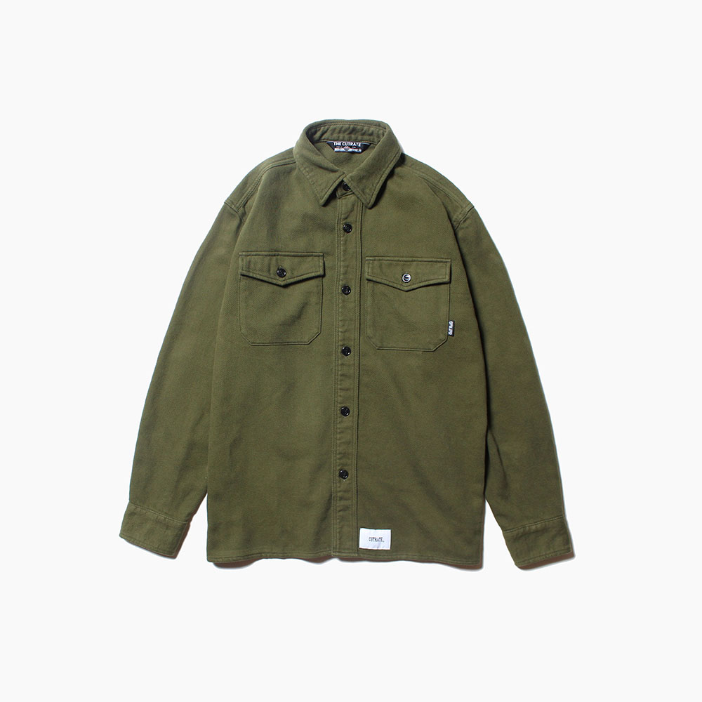 アメリカ海軍下士官のチーフシャツ"CPO SHIRTS"をベースにフラップポケット、台襟、前立て、ボックスタイプとディテールを再現。ボディはウールではなく、着心地の良い肉厚なコットン100%のヘビーネル素材を使用。また、アクセントにレザーのエルボーパッチがオン。ワンウォッシュすることで、さらに雰囲気も良くなり、洗濯後の縮みの心配もありません。サイズ感もややゆったりでインナーにスウェットやパーカーも良いのでは。