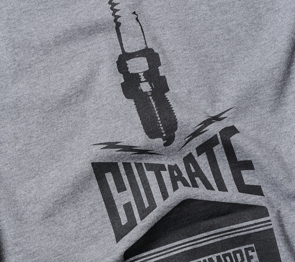 コットン100%のオリジナルボディーを使用したプリントTシャツになります。フロントにはブランドネーム、そしてバッグにはプラグを表現したデザインとなっています。バイカーなストレートなグラフィックが男臭さを燻るアイテムとなっています。
