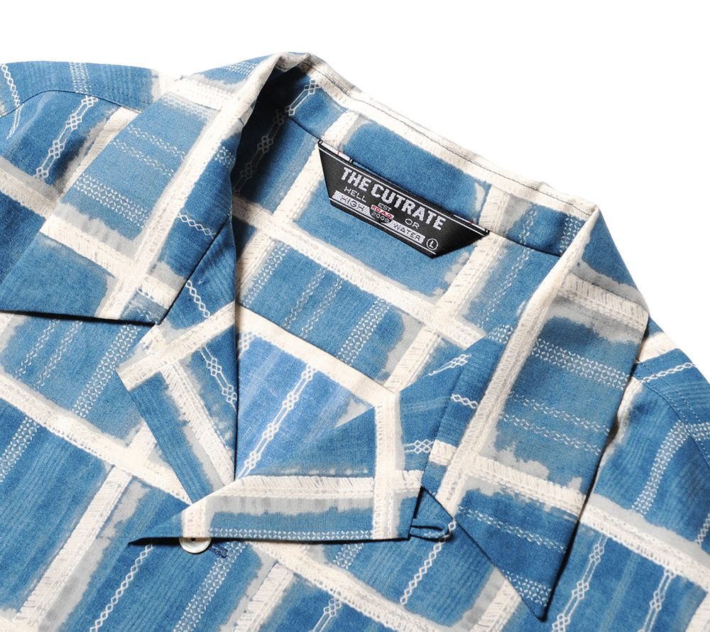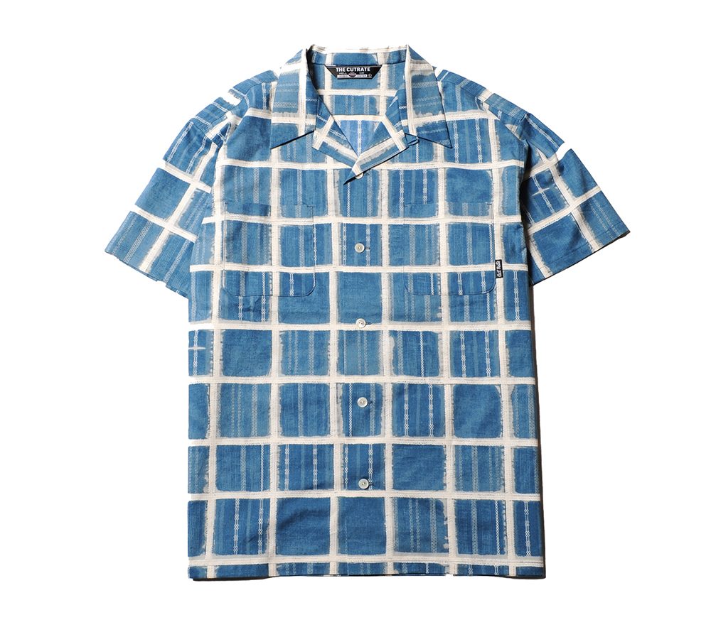 プリントでチャック柄を表現したS/Sシャツ。様々な模様が入り、染めで滲んでいる様な雰囲気になっています。オープンカラーで、クラシックにもストリートな雰囲気にも落とし込めるシャツではないでしょうか。
