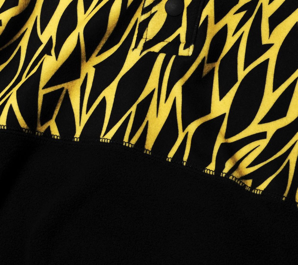 スナップボタンタイプのプルオーバーフリースカットソー。胸より上をオリジナルパターンで切り替えた、CUTRATEらしいデザインになっています。メイントップスでは勿論、ジャケットのインナーとしても映えるアイテムです。