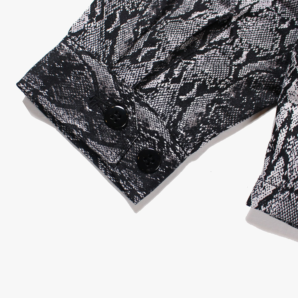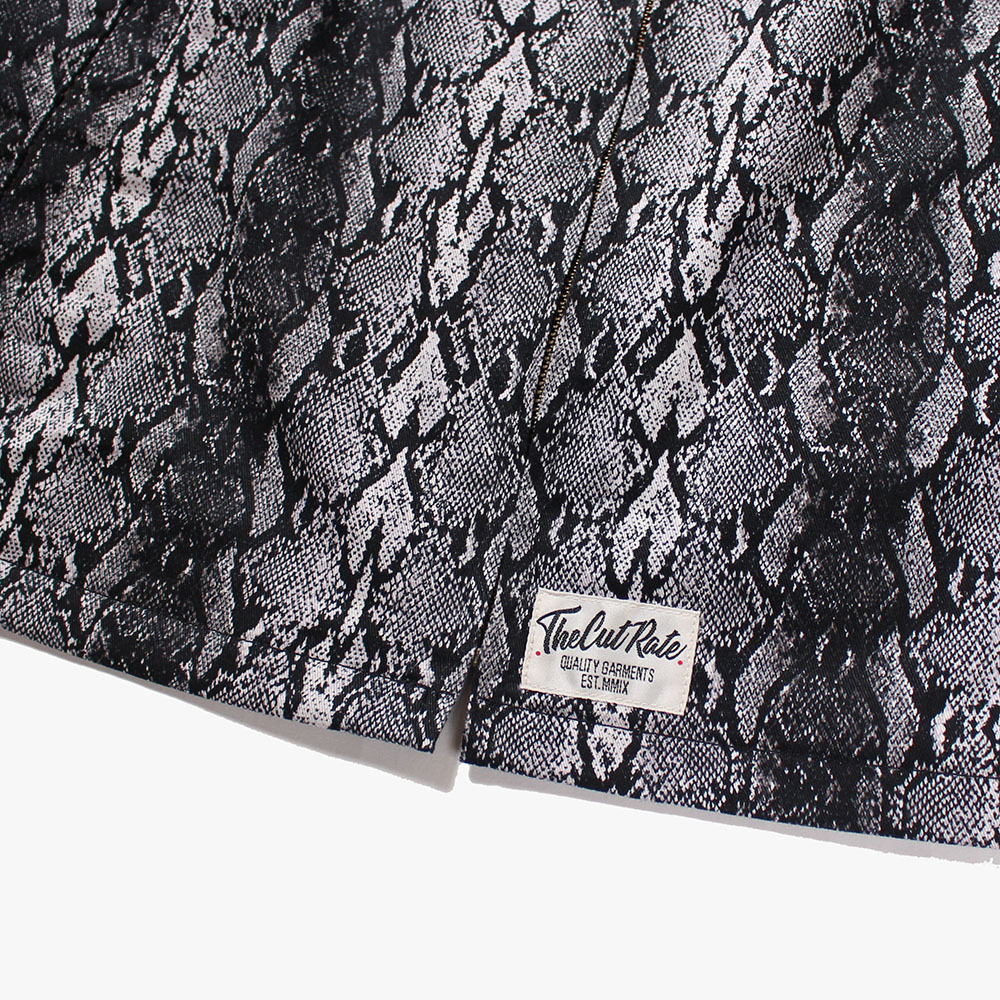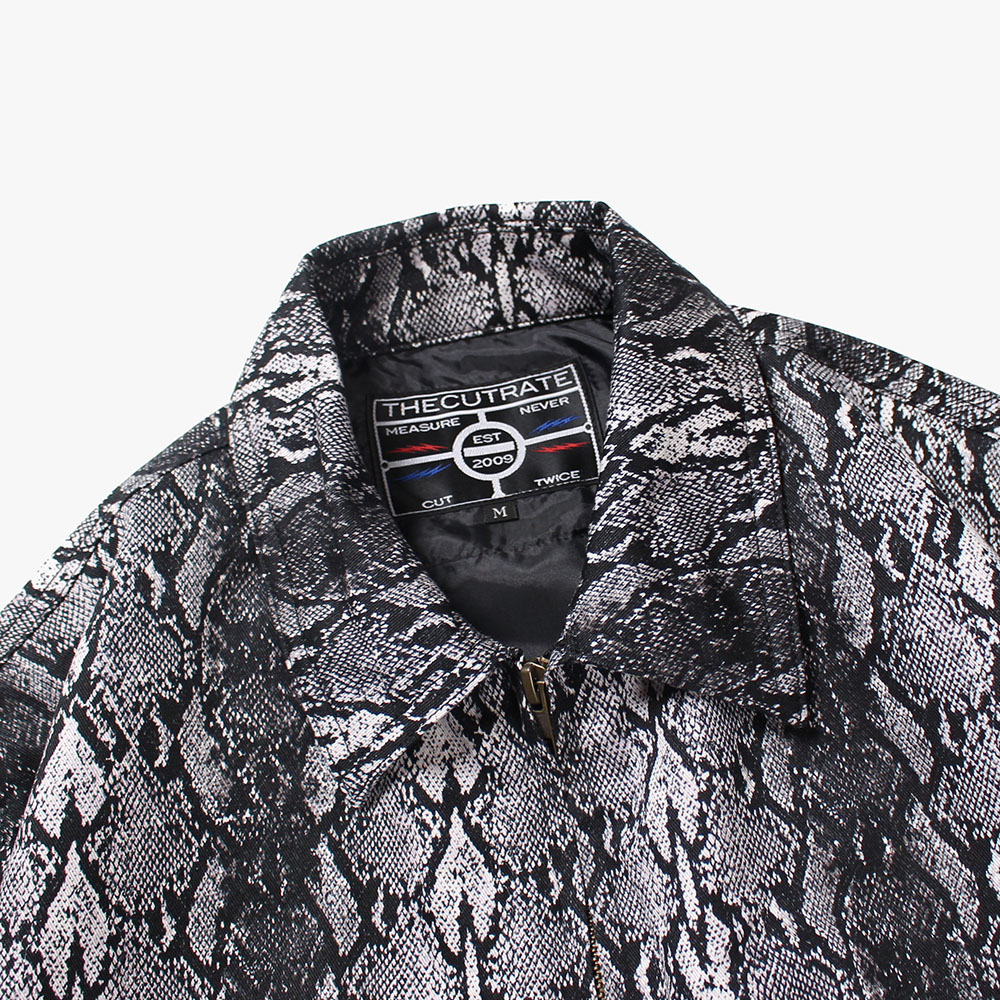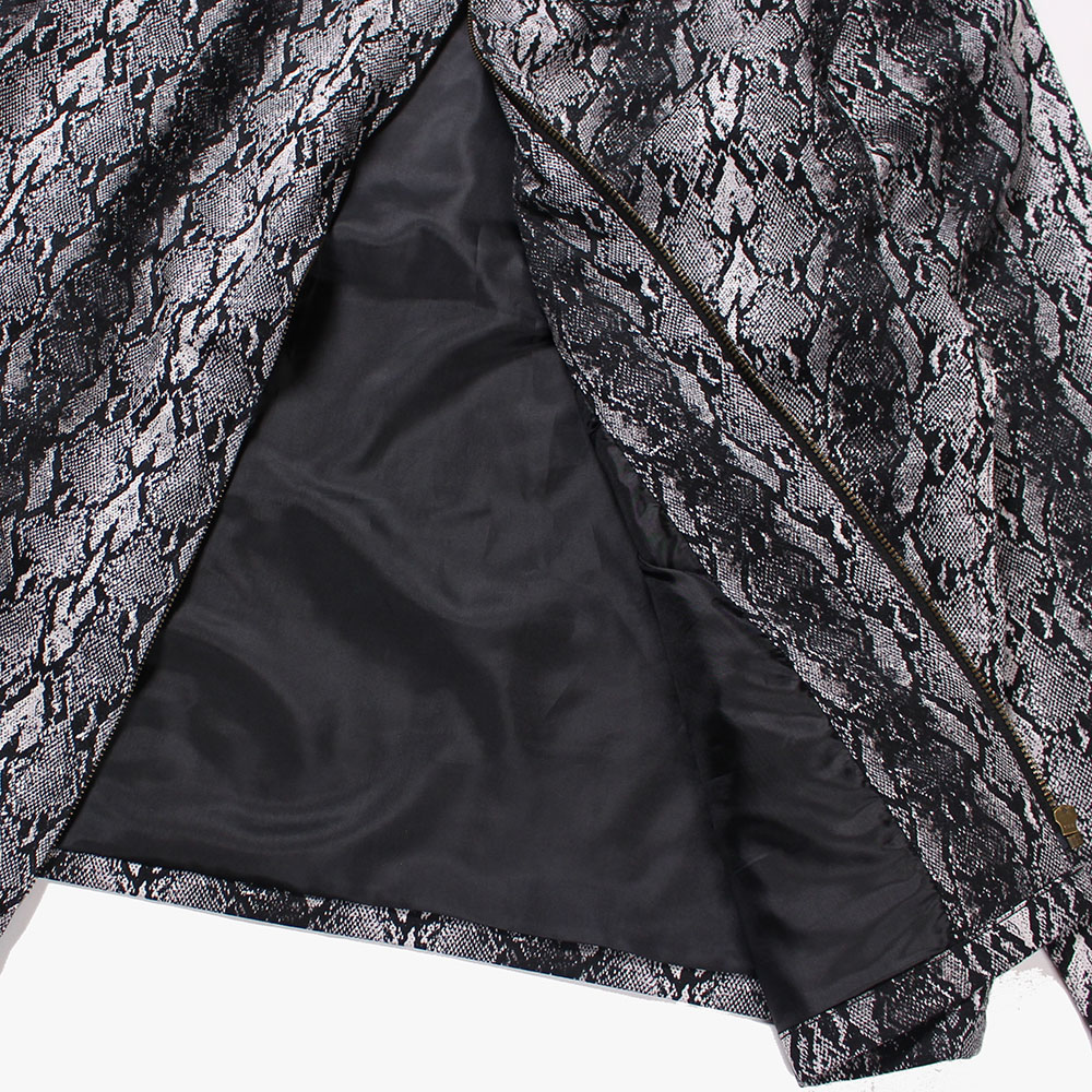 パイソン柄のコットン地を使用したスウィングトップ。フロントはにはブランドネームをシンプルに。インナーには着心地の良いナイロン地を一枚貼り合わせたベーシックなライトアウターが完成。