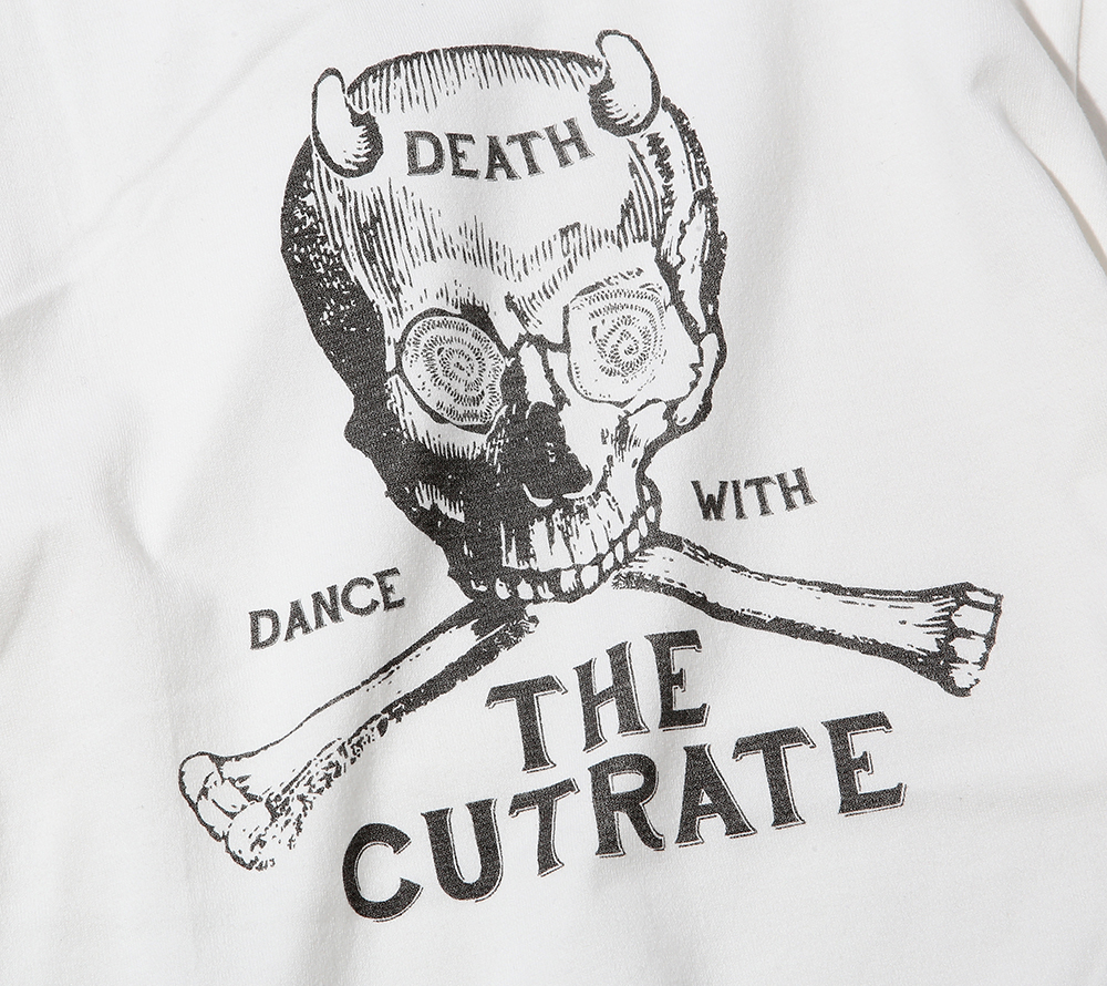 コットン100%のオリジナルボディーを使用したプリントTシャツになります。フロントにはインパクトのあるスカルがプリントで施され、ブランドのアイデンティティーを強く感じて頂けるアイテムとなっています。スカルモチーフのイメージが強いCUTRATEからオールド調なスカルが光るアイテムです。