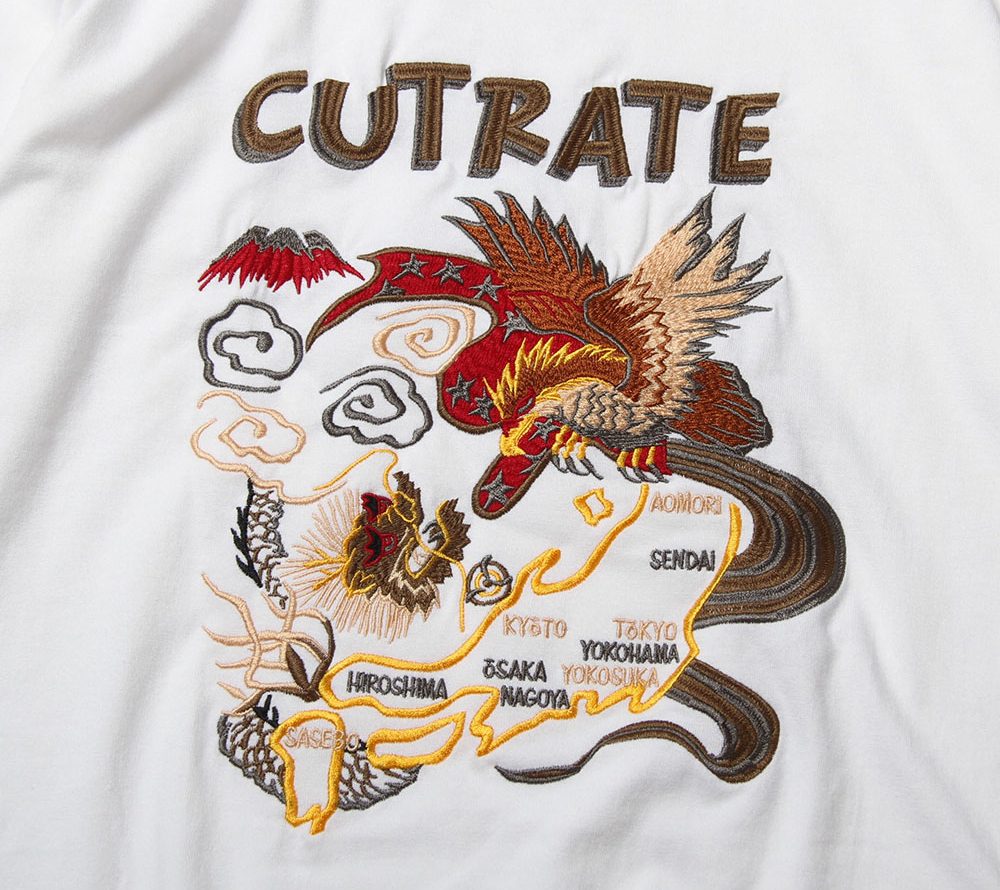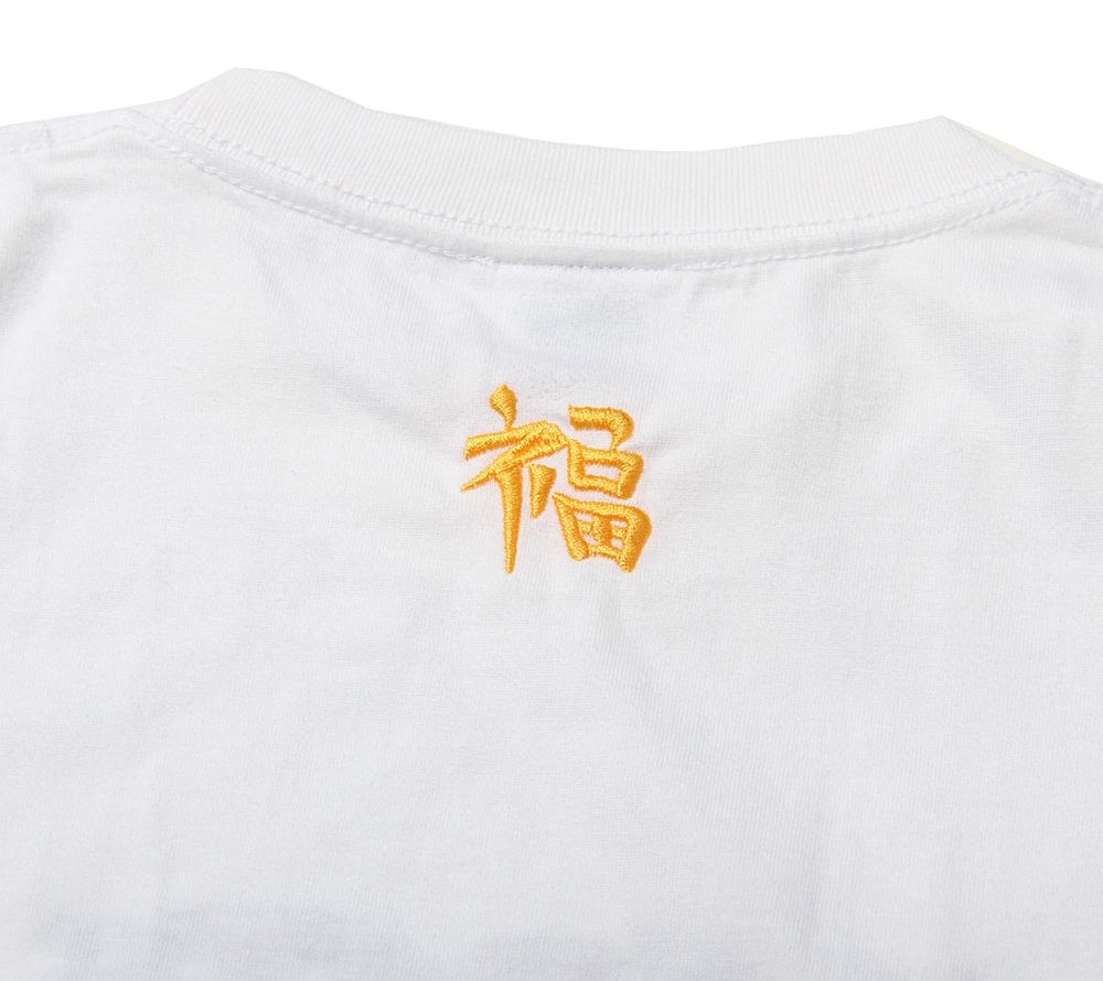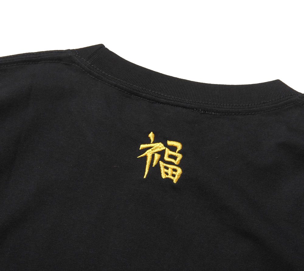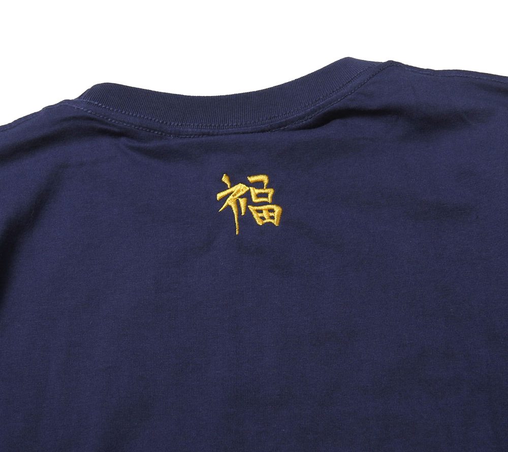 フロントにはヴィンテージスカジャン等で用いられる、日本マップに鷹と龍を刺繍にて再現。敢えてジャケットではなくティーシャツにオン。背面の首後ろ部分には"福"の刺繍と是非、秋口に来て頂きたい贅沢なティーシャツが完成。ボディには前回同様コットン100%の6.2OZを使用。