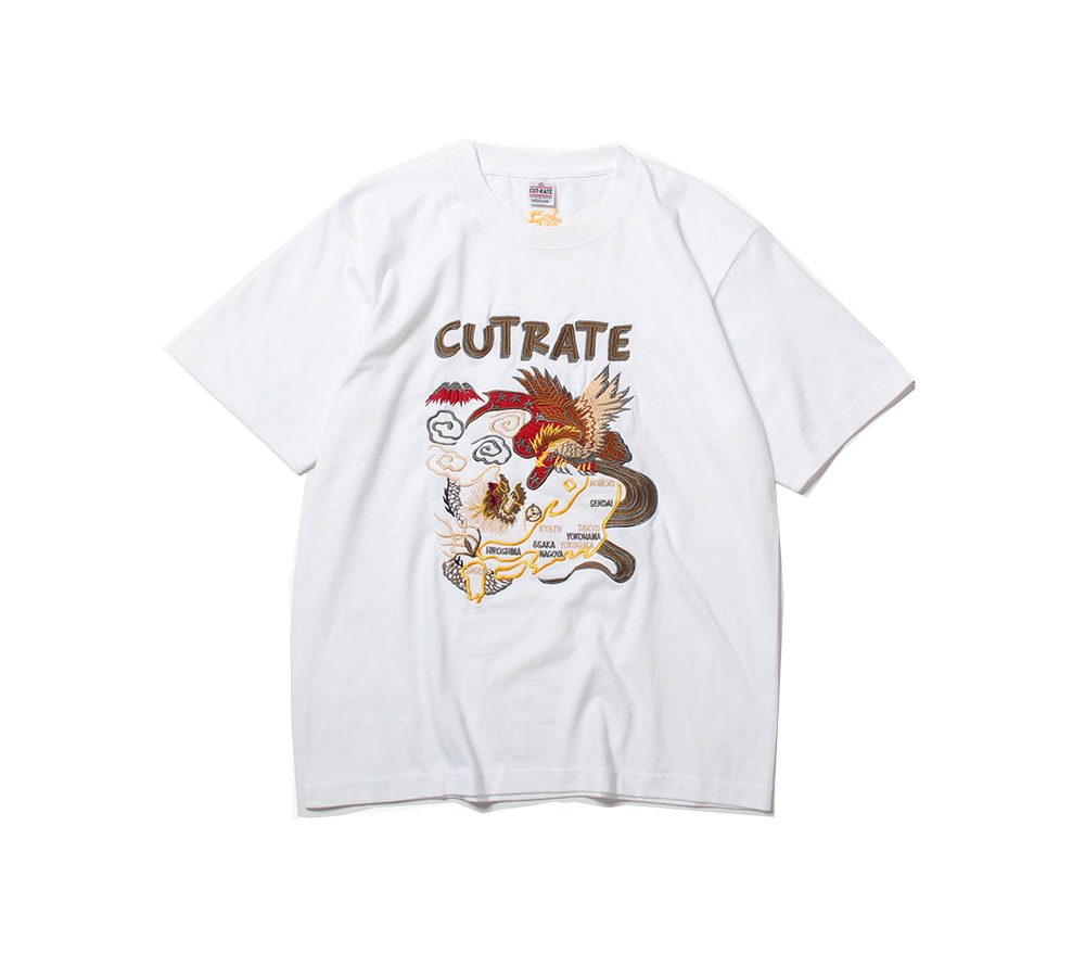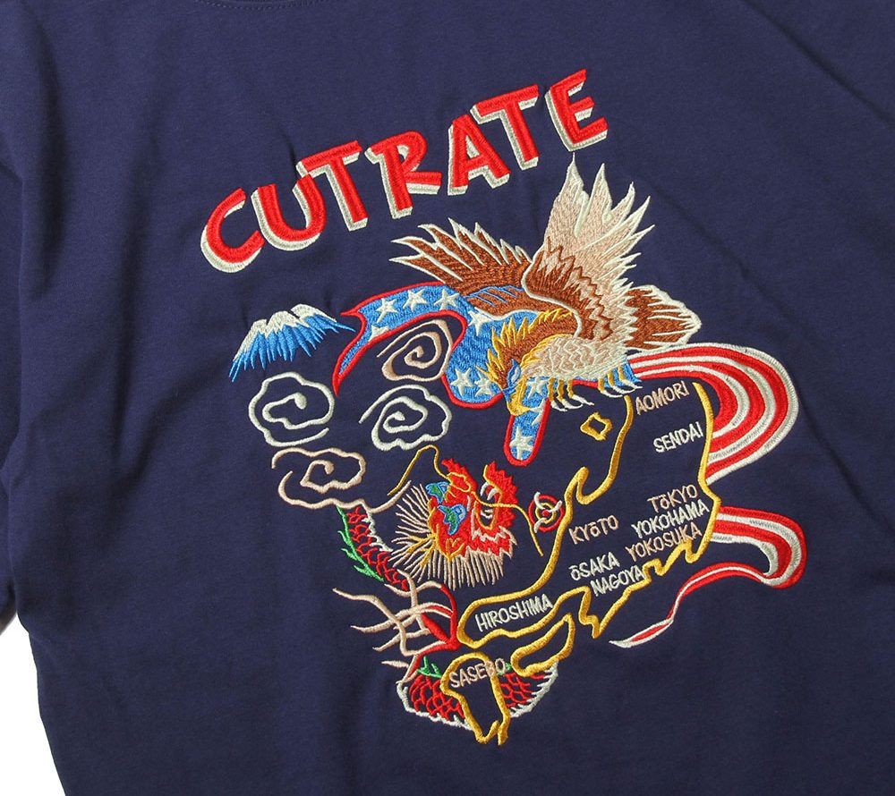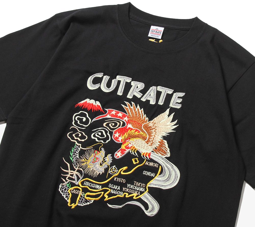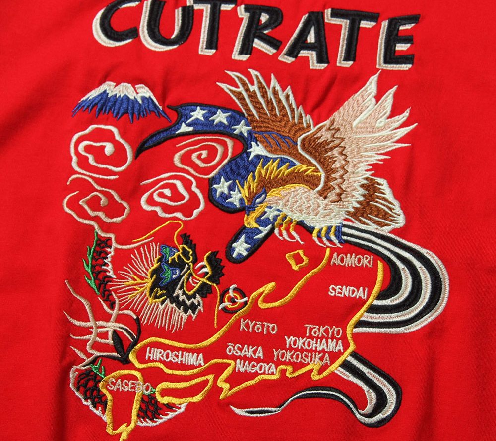 フロントにはヴィンテージスカジャン等で用いられる、日本マップに鷹と龍を刺繍にて再現。敢えてジャケットではなくティーシャツにオン。背面の首後ろ部分には"福"の刺繍と是非、秋口に来て頂きたい贅沢なティーシャツが完成。ボディには前回同様コットン100%の6.2OZを使用。