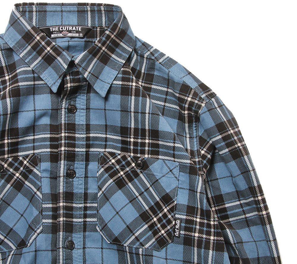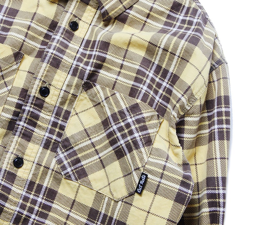 コットン100%のライトコーデュロイ地を使用して作製されたチェックシャツとなります。シルエットはややゆったり目のラウンドシャツとなり、ワンウォッシュ加工を施しております。カラーリング的にも春先に活躍する一枚で、ややゆったり目のシルエットでトレンド感あるサイズ感となっております。