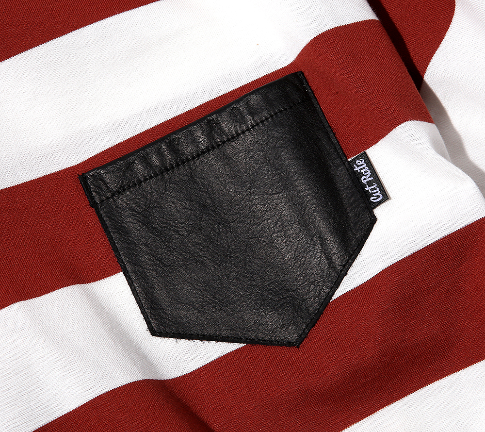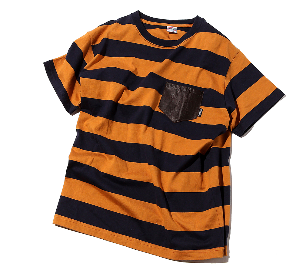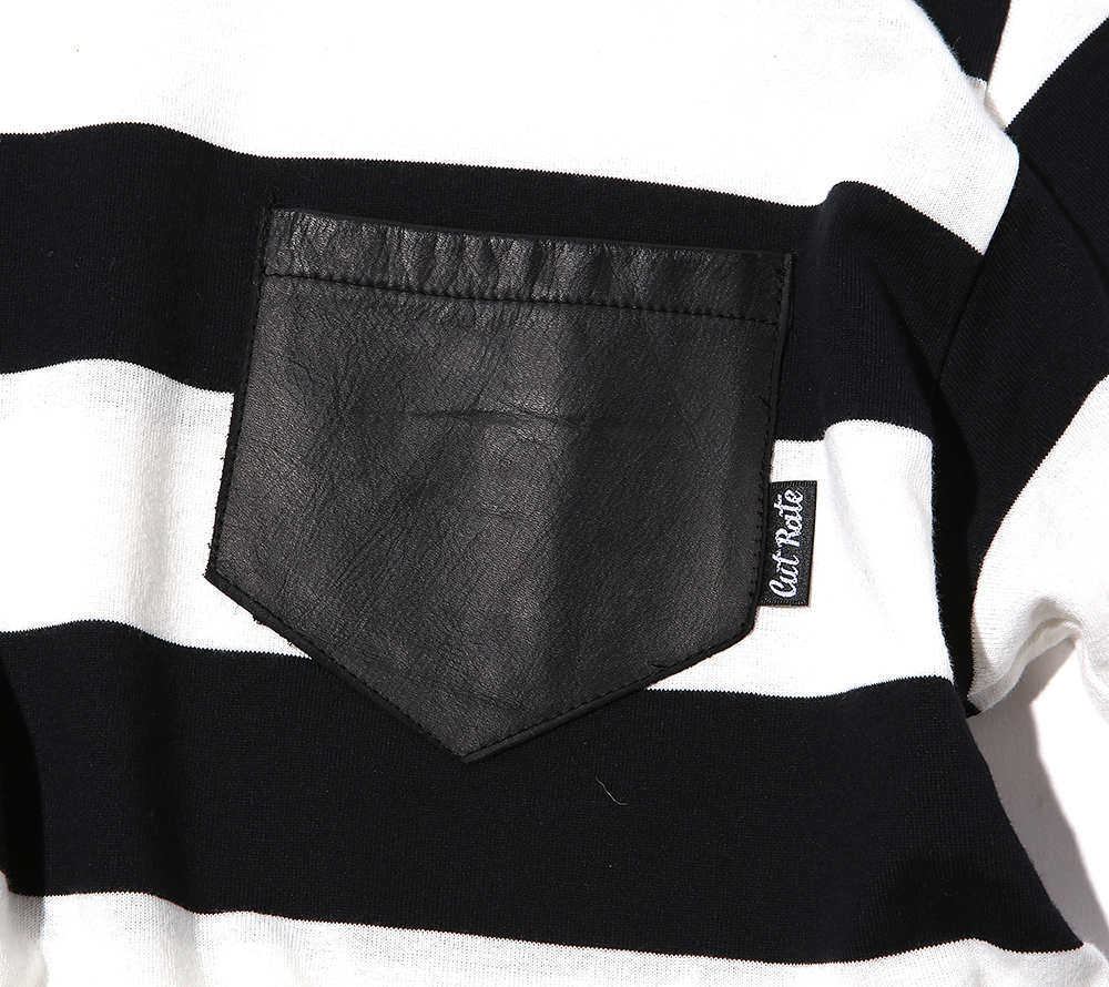 左胸のポケットにウォッシャブルレザーを使用したポケットボーダーTシャツになります。ボディーはコットン100%のオリジナルボディーを使用し、着込む程に風合いが出て来ます。シンプルなディテールとなっていますが、レザーのポケットとボディーの経年変化を存分に、楽しんで頂けるのではないでしょうか。