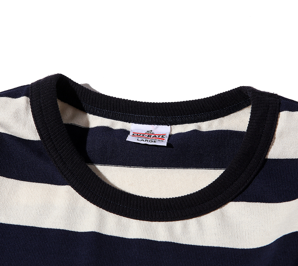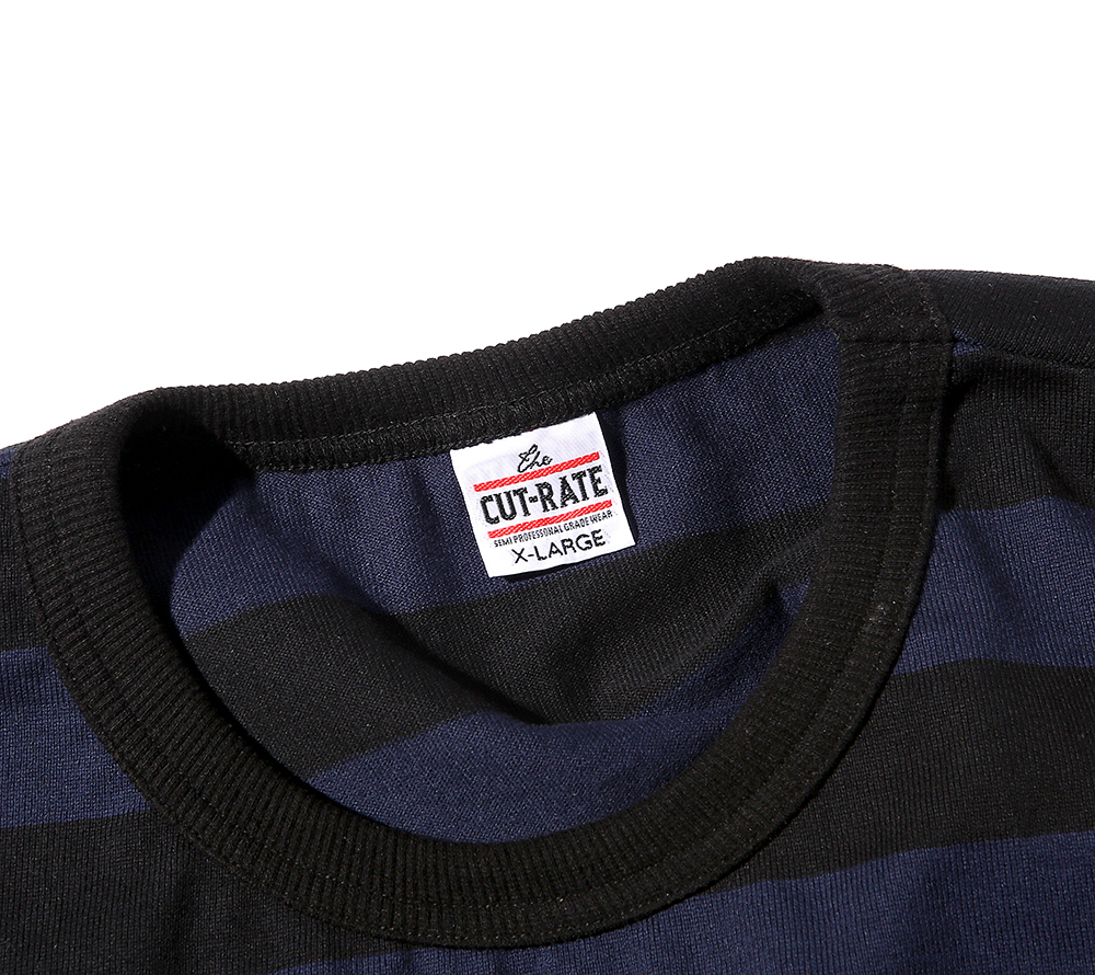 コットン100%のボディーを使用し、作製されたボーダーTシャツになります。今季はNAVYベースでのカラー展開でリリースされております。また、今季はフロント左胸にワンポイントで、バックにはインパクトあるプリントが施されており、雰囲気良く仕上がっております。