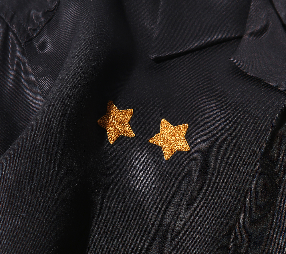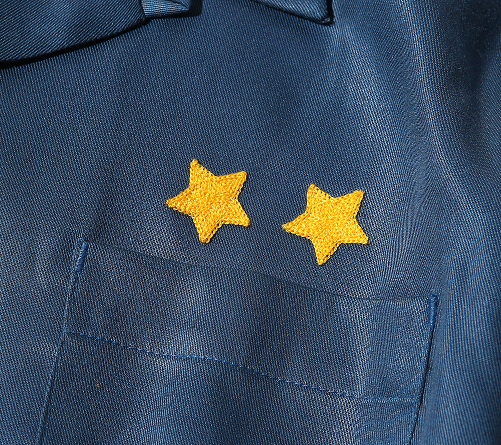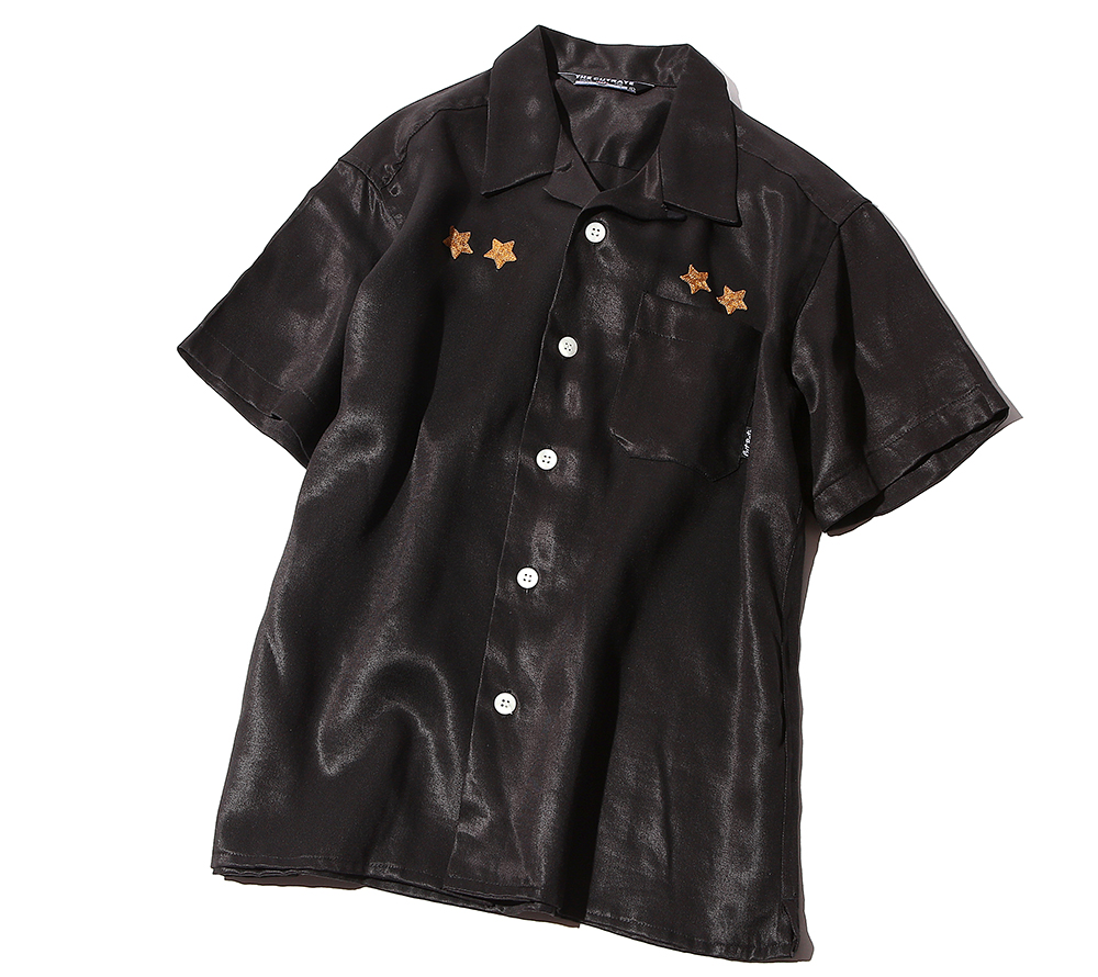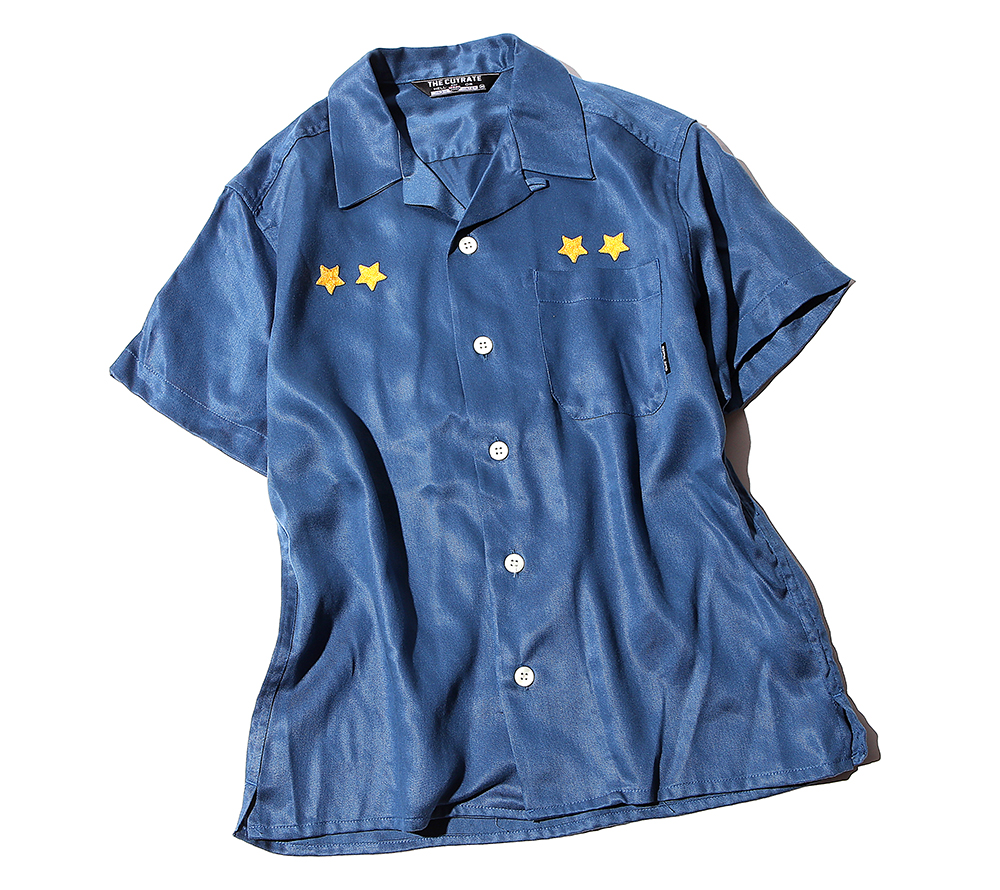 再生セルロース繊維の一つでもあるリヨセルを使用したセルヴィッチチノクロスの刺繍シャツになります。レーヨンの様なドレープ感が特徴の生地となっており、開襟ボックスのシルエット等、クラシカルな一枚に仕上がっております。フロント両胸に星のチェーン刺繍、バックには今季のメインロゴがチェーン刺繍で施され、雰囲気良く仕上がっております。