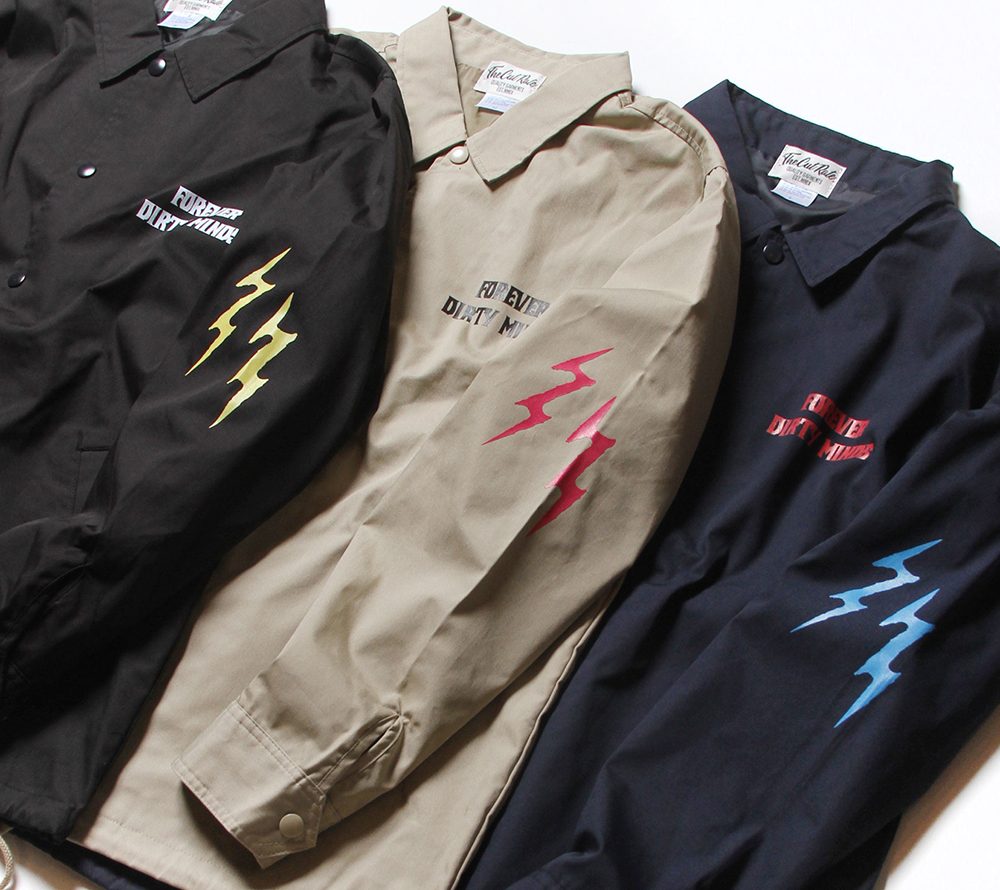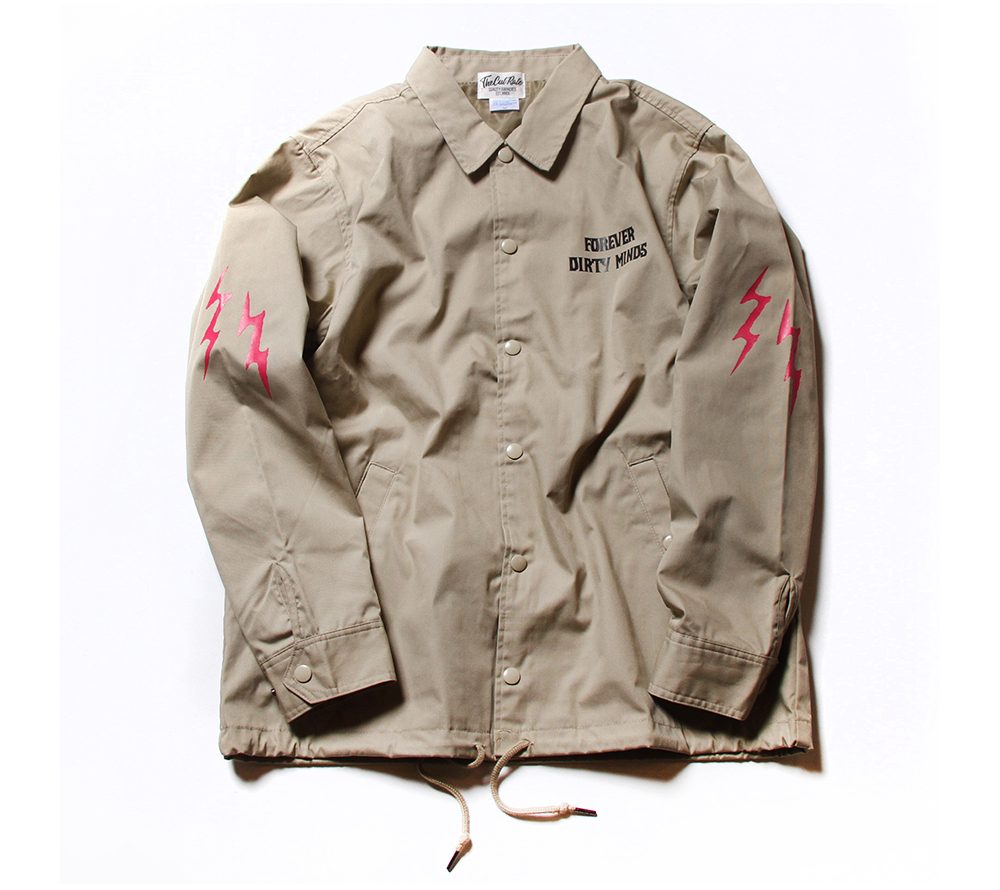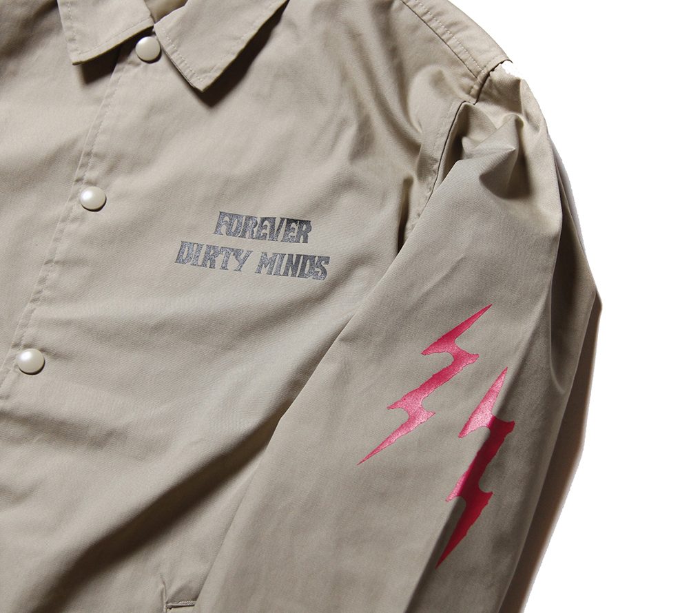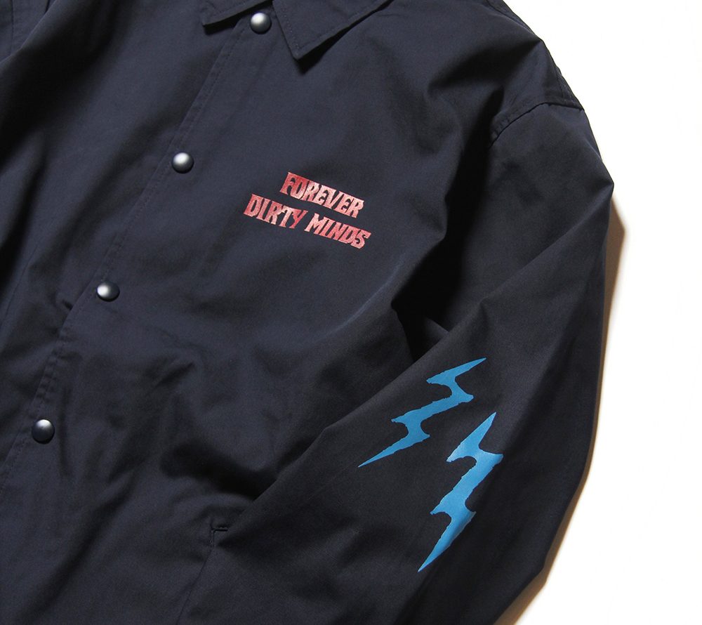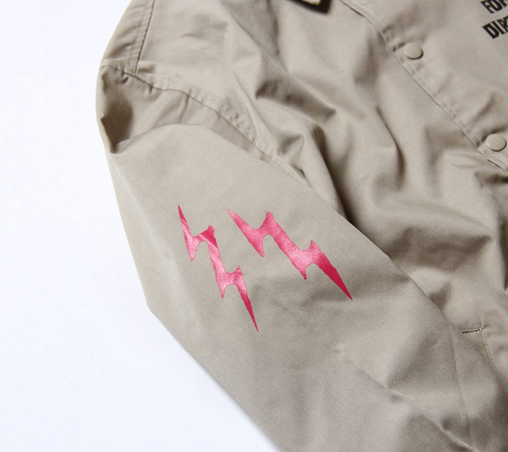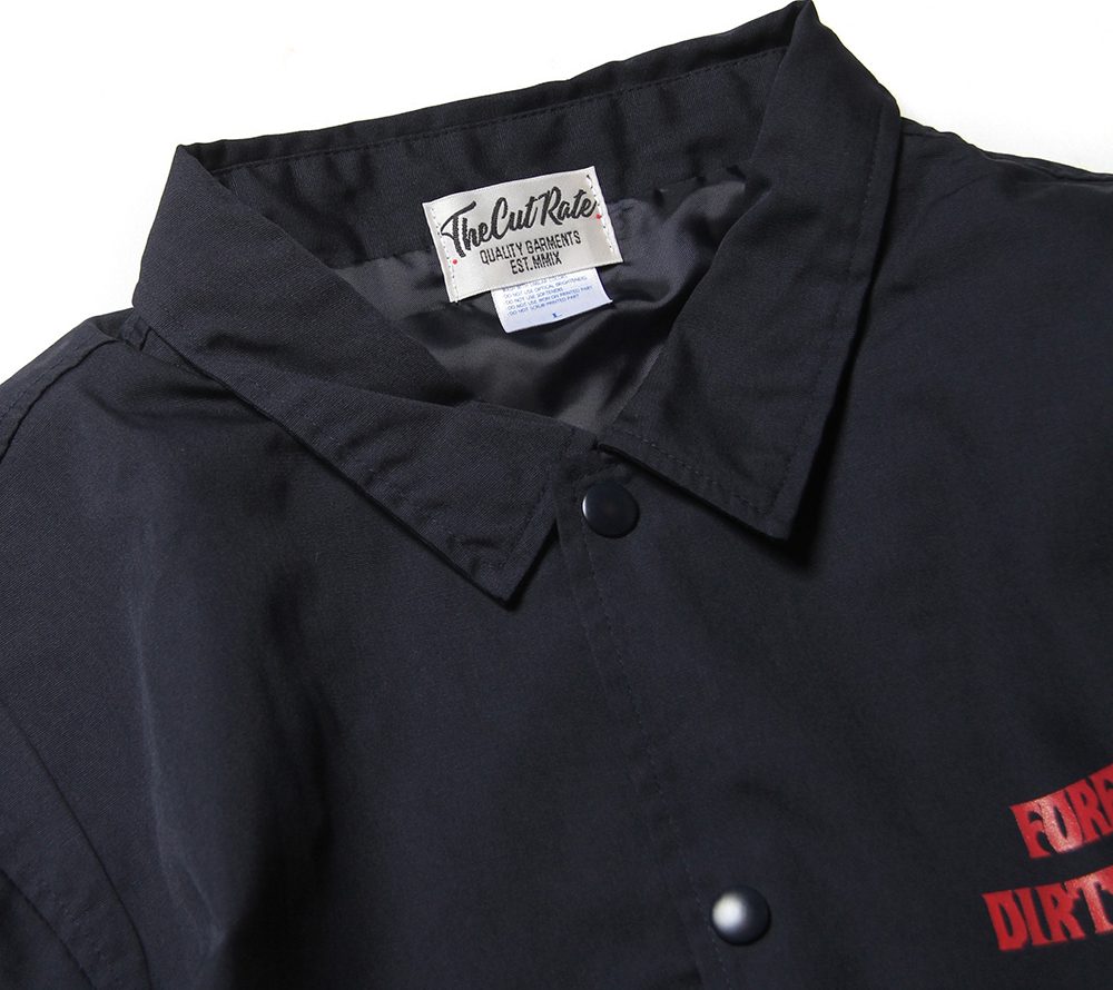ポリエステル65%、コットン35%のT/Cウェザークロスを使用したコーチジャケット。フロント左胸、バック、両腕にプリントが入ります。CUTRATEらしいインパクトあるグラフィックは勿論、マッドな質感で撥水加工も施したボディーを採用し、機能面でも拘った仕上がりになっています。
