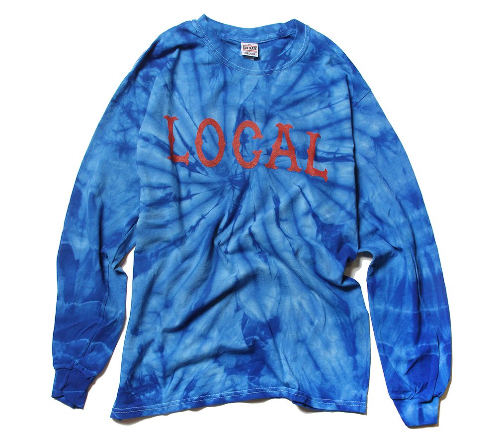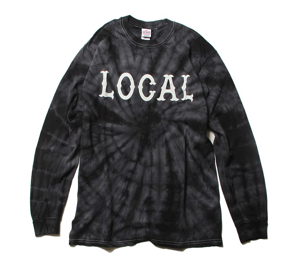 CUTRATEのアイコン的なグラフィックである、LOCALロゴをタイダイ染めのボディーにプリントしたL/S Tシャツとなります。職人が一つ一つ手作業で染めの工程を行っており、サイズ感、柄、模様、色合いになどにより個体差があります。