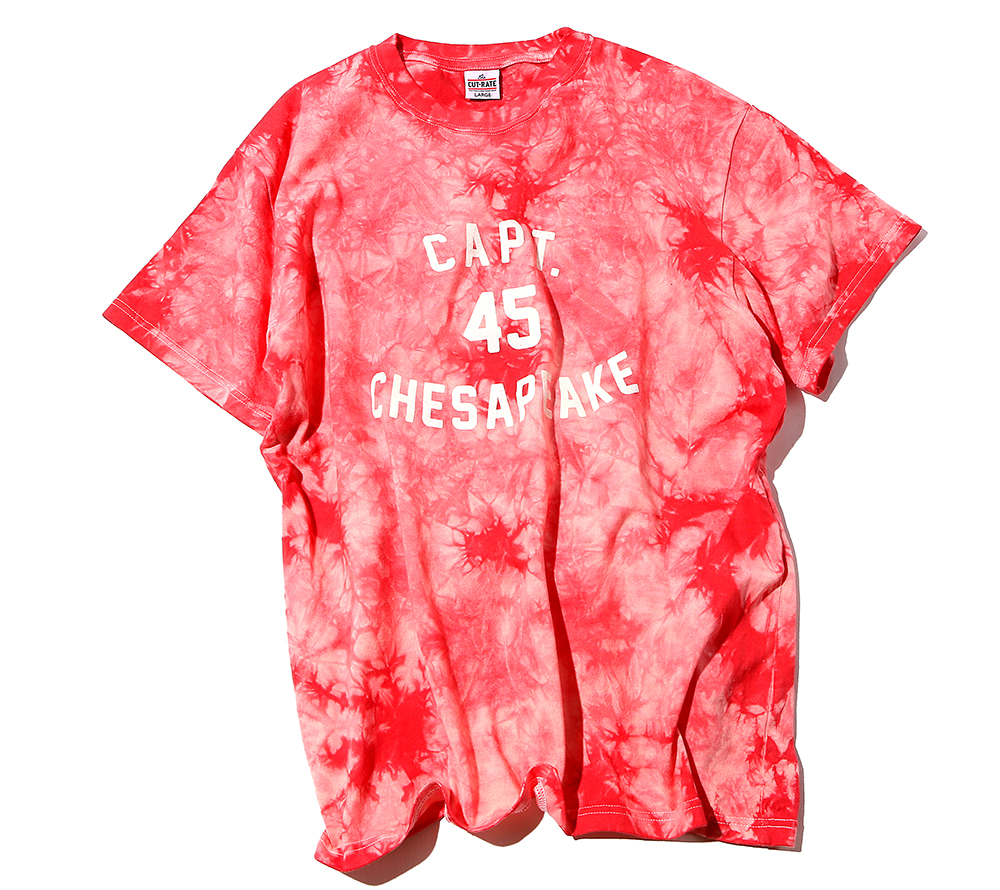 タイダイ染めで製作した作ったTシャツになります。フロントにはカレッジテイストのプリントが入り、雰囲気良く仕上がっております。タイダイ染め独特のグラデーションがかったカラーリングが春夏のスタイルを華やかにしてくれますし、季節感を演出出来るのではないでしょうか。