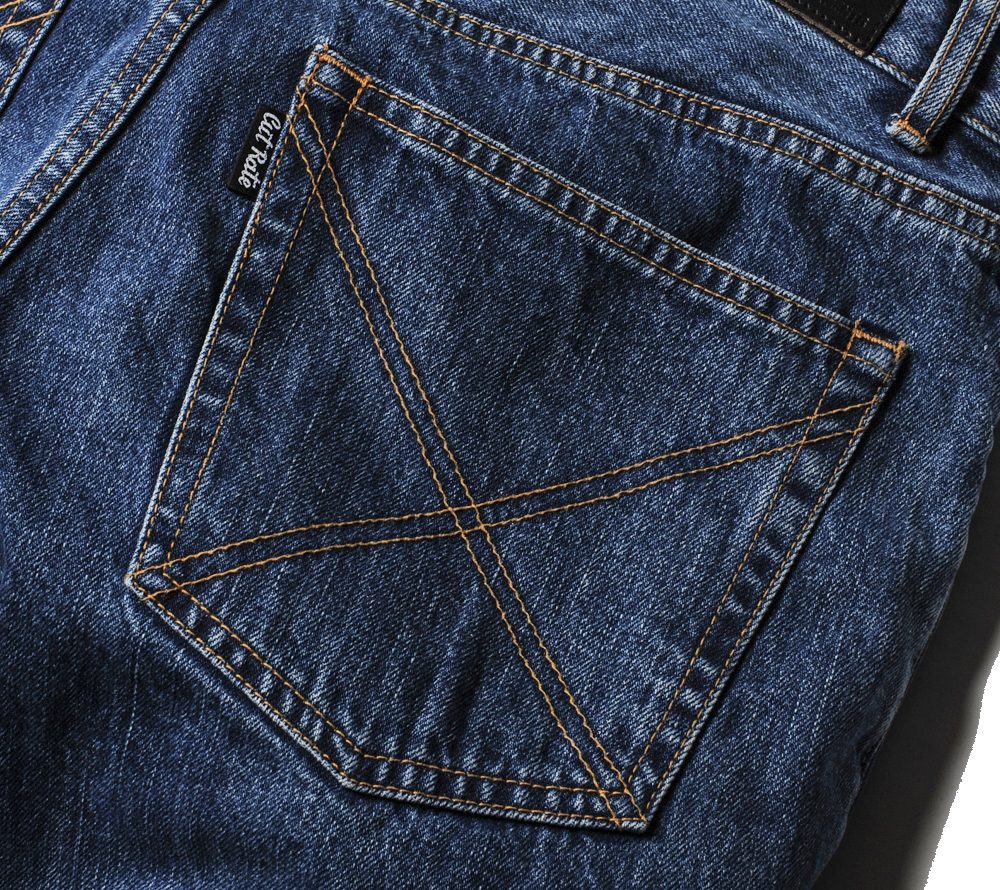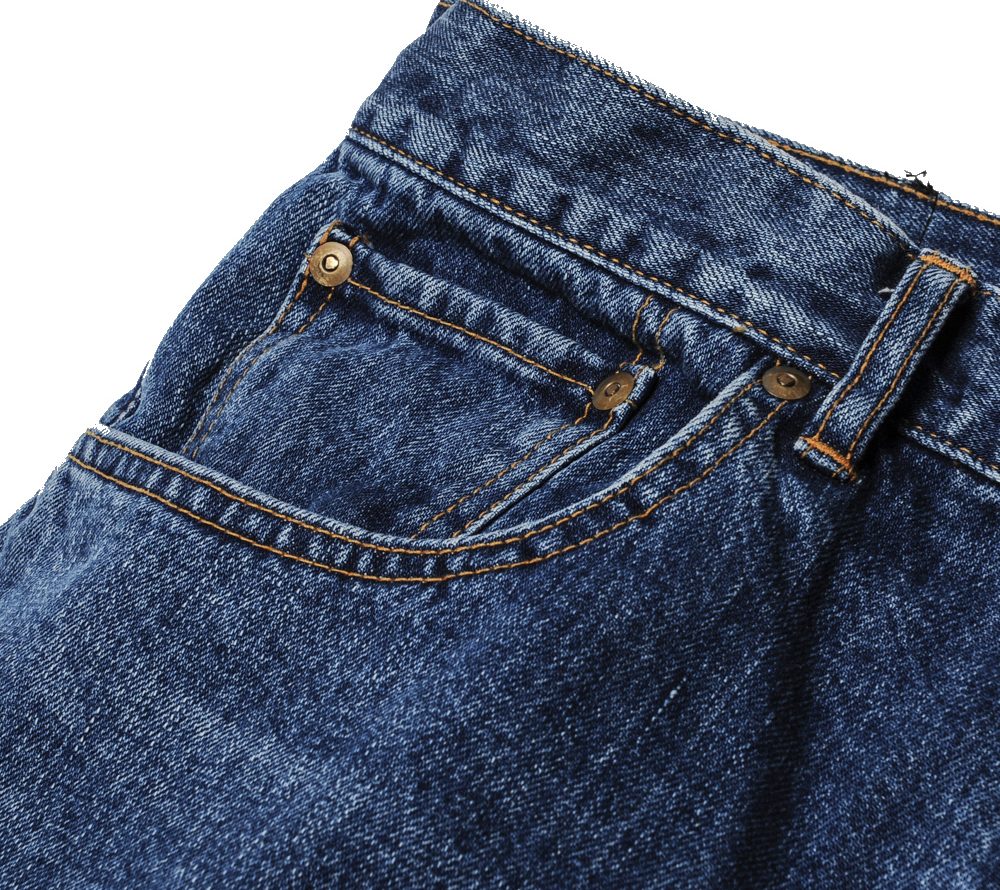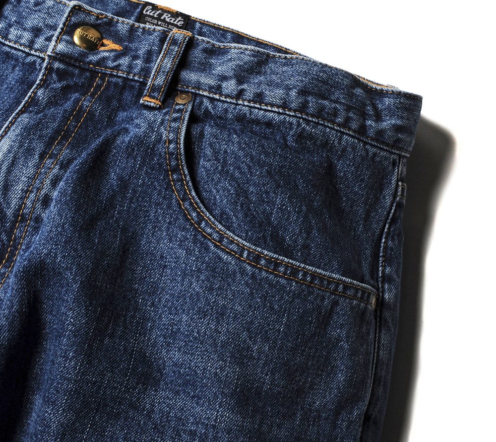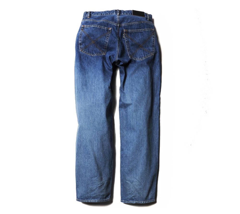 ワイドシルエットで製作したUSEDデニムパンツです。裾周りにかけてテーパードを効かせる事によって、ワイドシルエットながらもスニーカーと合わせる事が出来ます。90'Sのストリートカルチャーでよく見られた、バギーパンツを現代風にアレンジしたシルエットです。