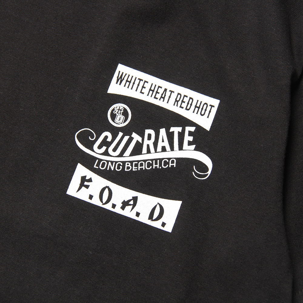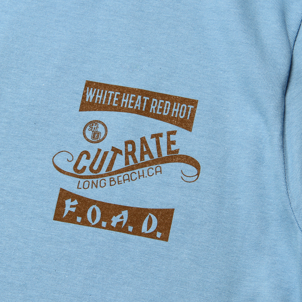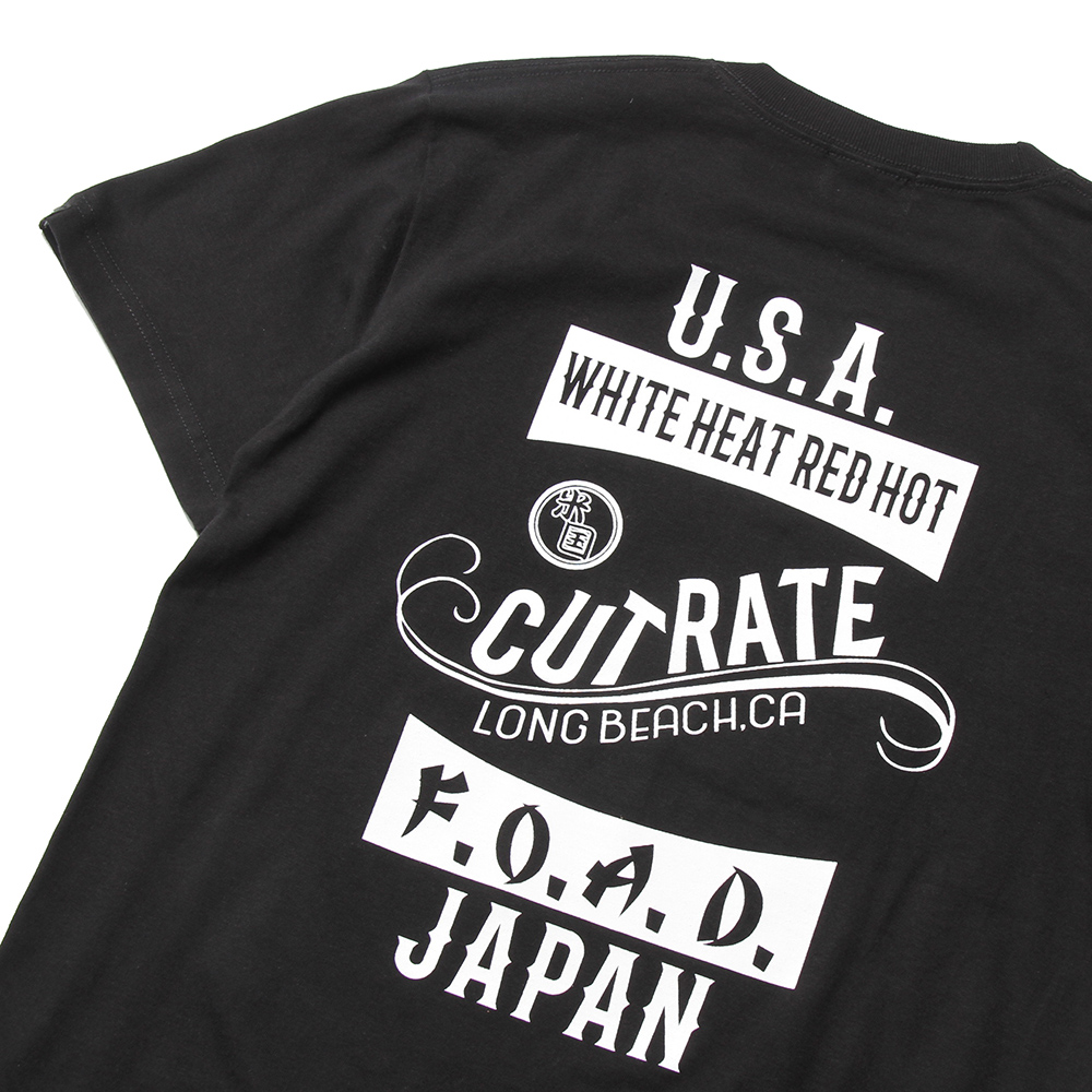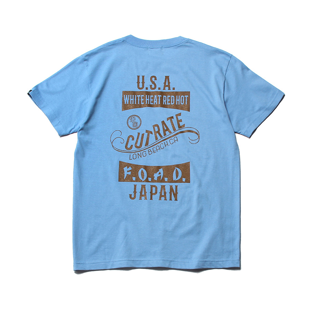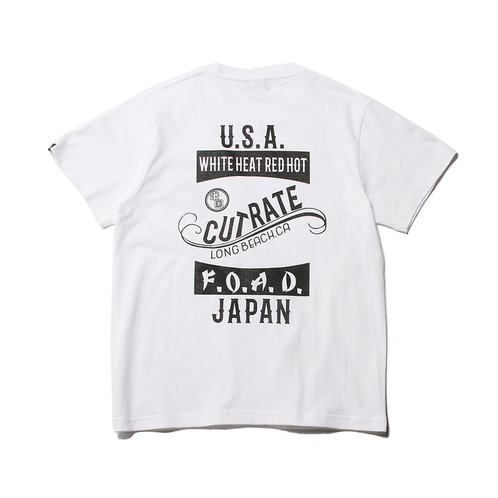 アメリカンサインボードをイメージ作製させれたグラフィックにさり気なく日本をイメージ出来る要素をさり気なくなフォントや印にて表現。フロント左胸、バックに大判で、これからの夏に向けインパクト大な一枚に。