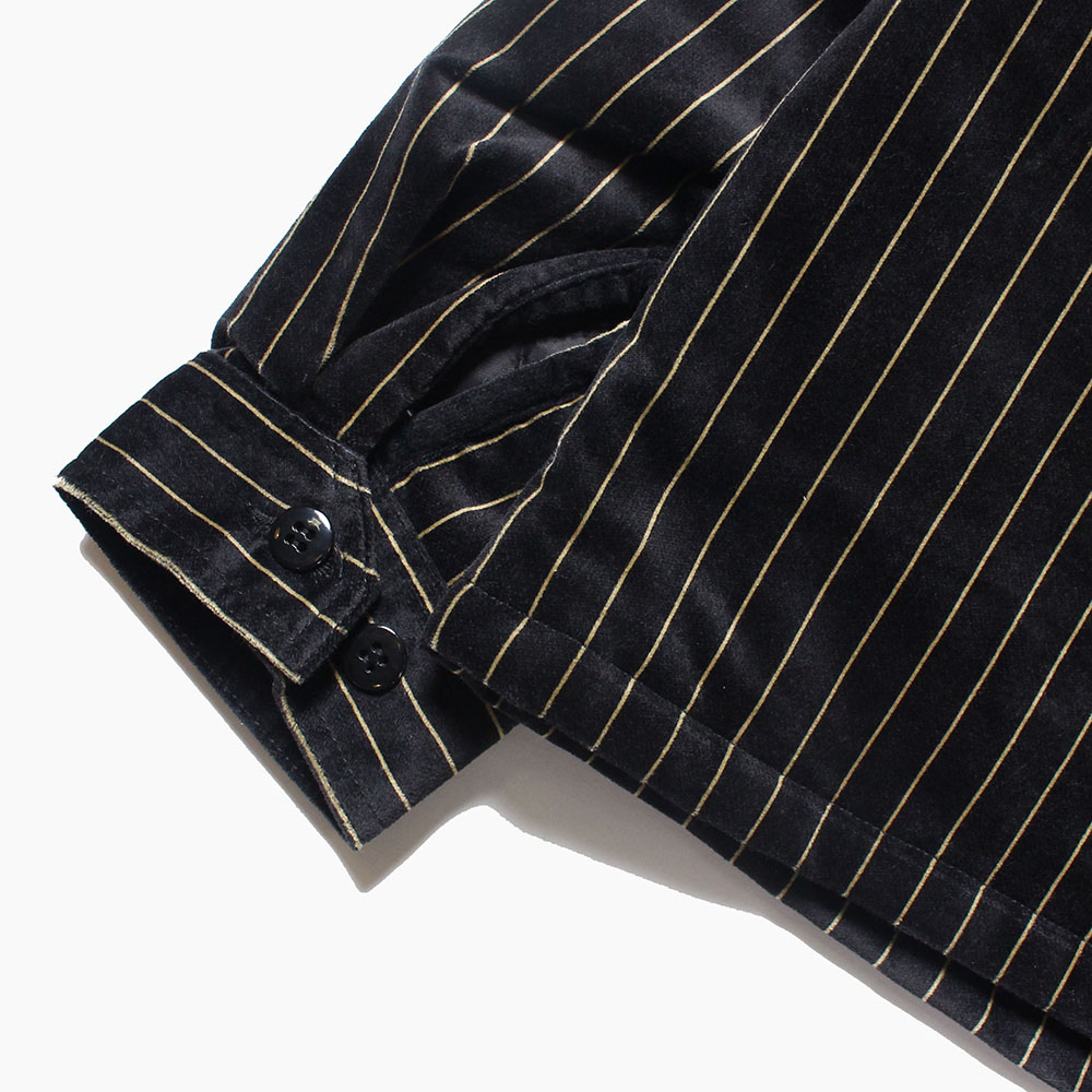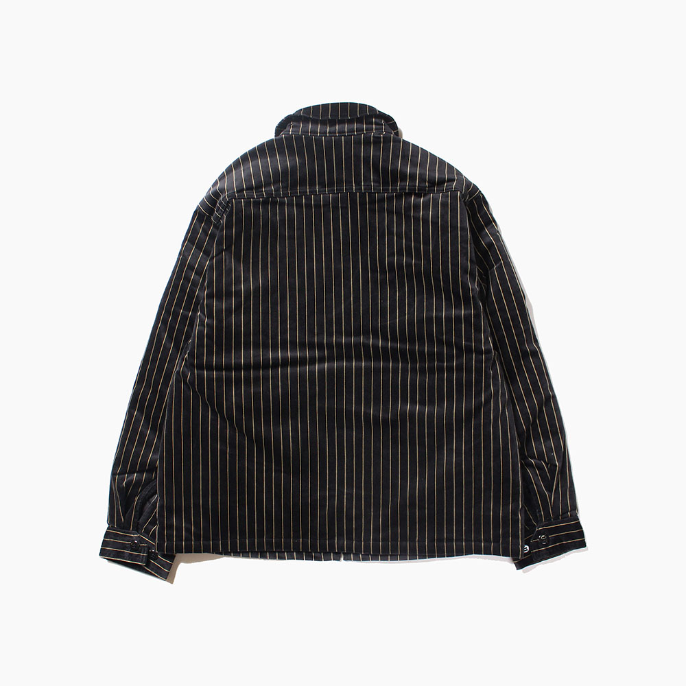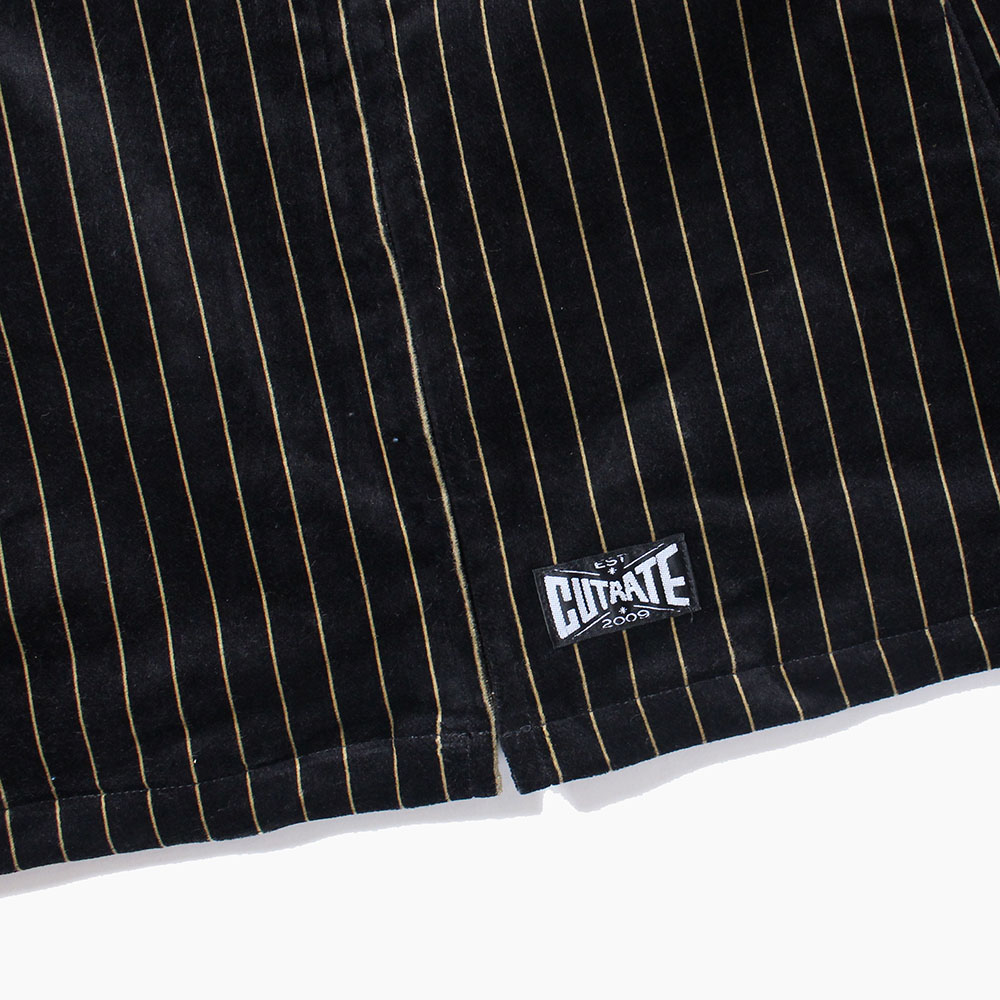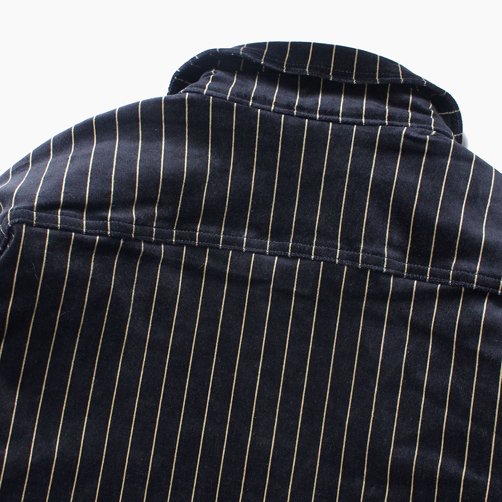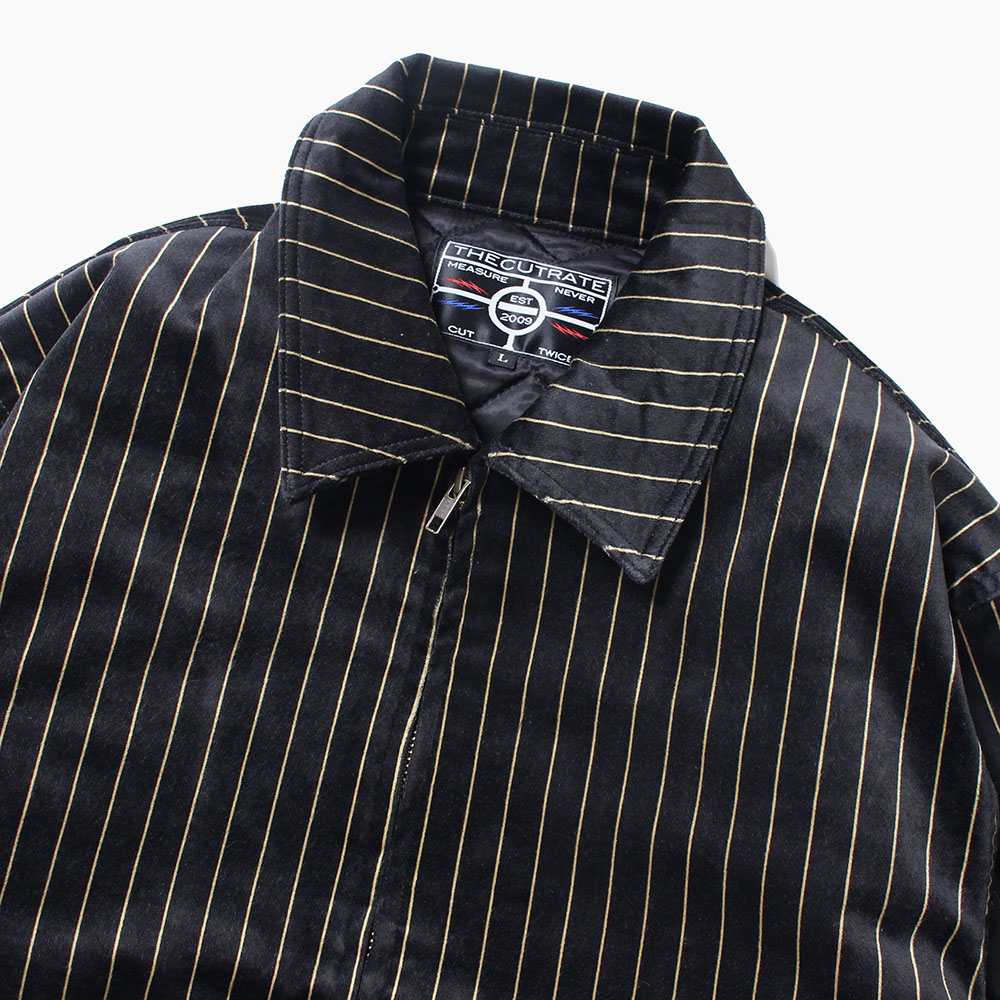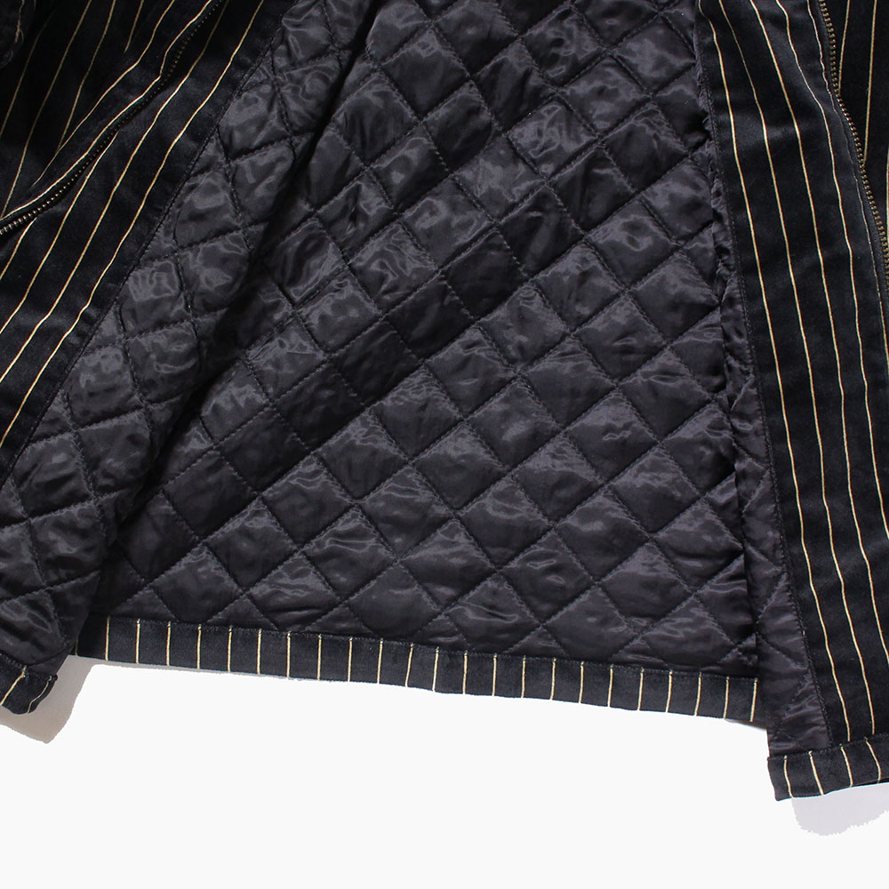 肉厚で高級感のあるベルベット地を使用したゴールドストライプのスウィングトップ型ジャケット。裏地には中綿キルティングとなり、保温性も高く、冬のメインアウターとして使用できるのでは。