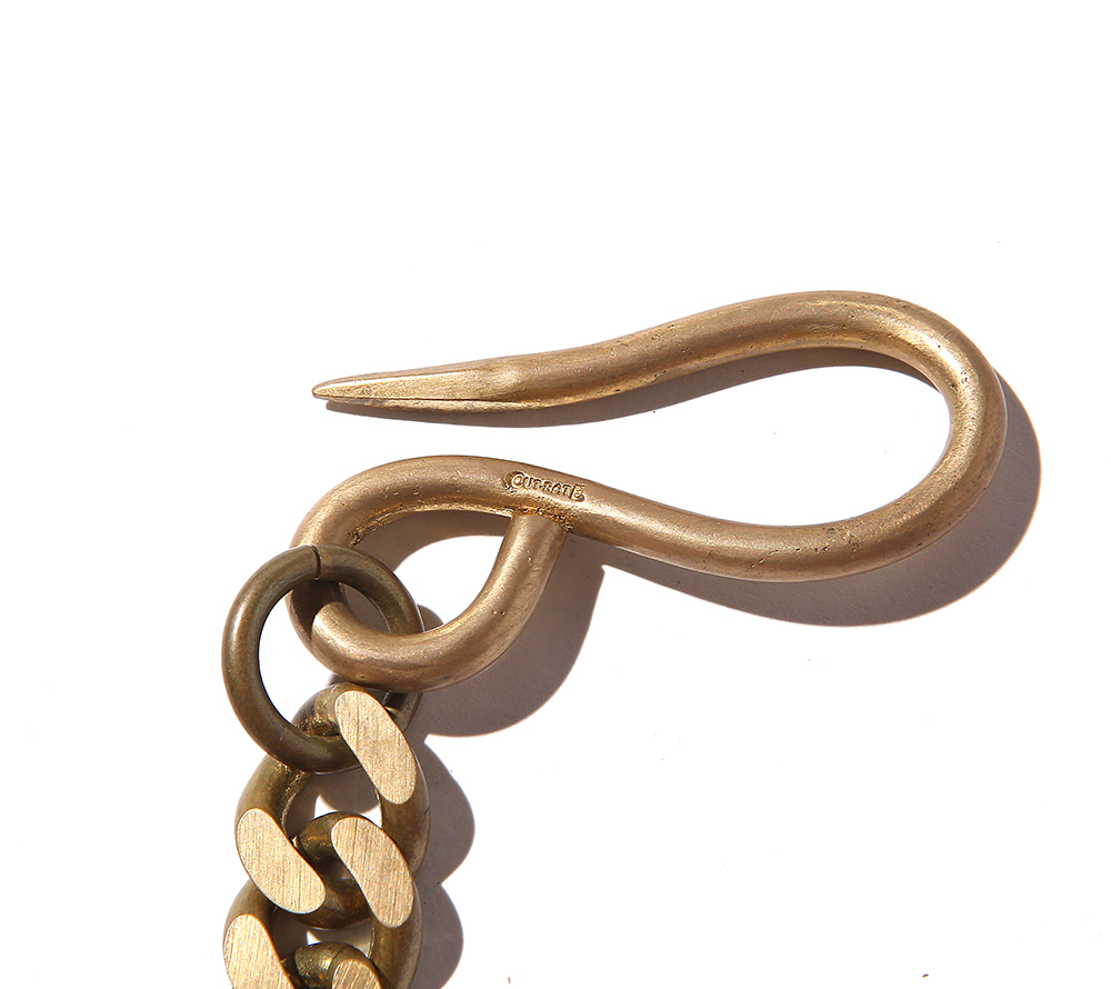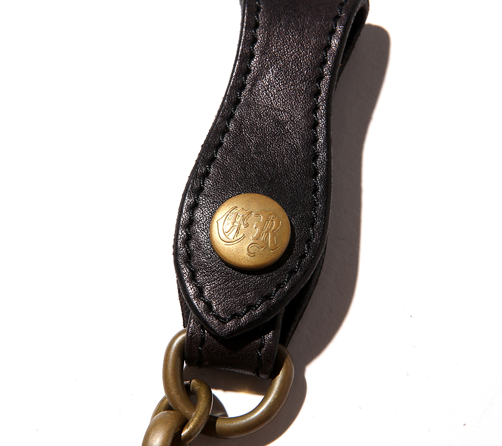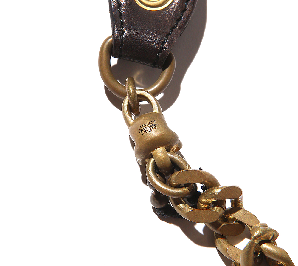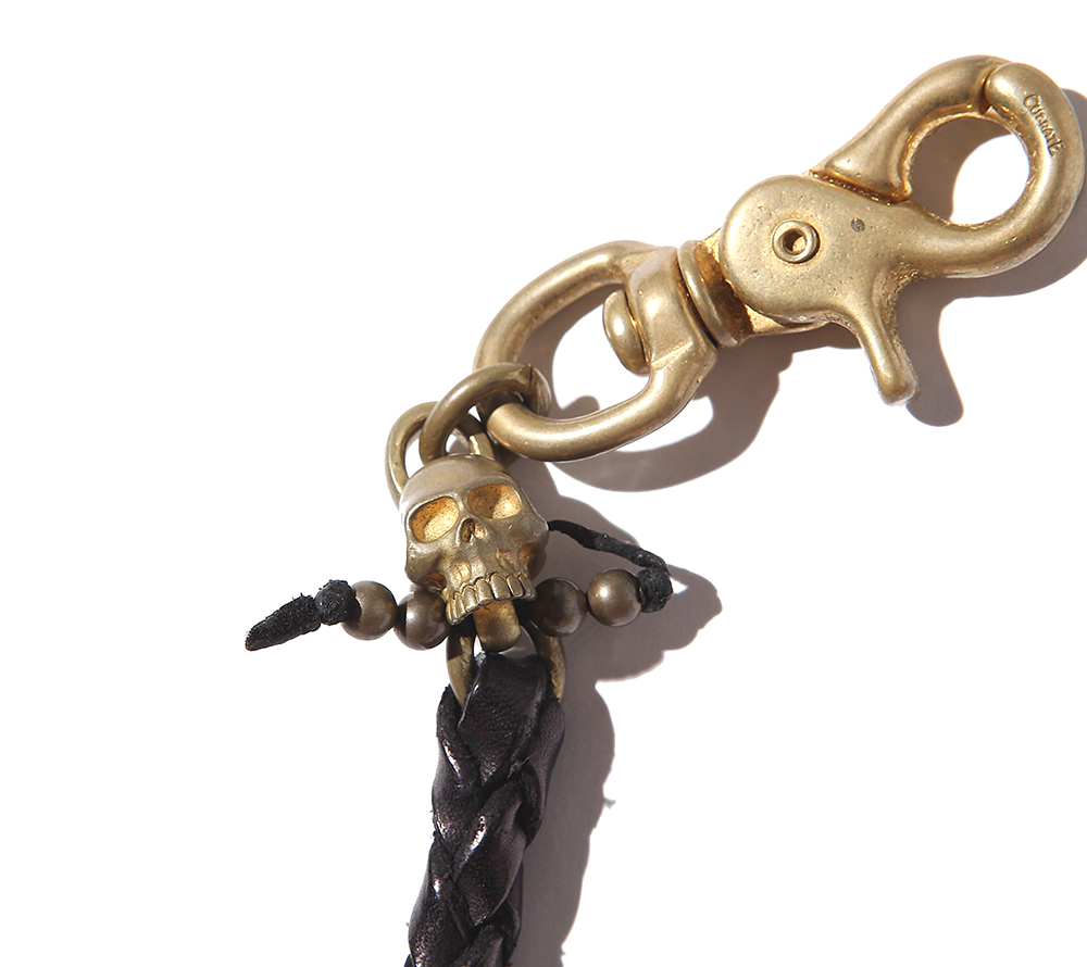 今季、新作としてリリースされるベルト通しタイプのウォレットチェーンになります。ベルト通し部分にはレザーを使用しスナップボタン仕様となっております。また、ベルト通し部分のレザー下にスカルパーツを使用し、裾から覗くスカルがアクセントになるよう作製されております。