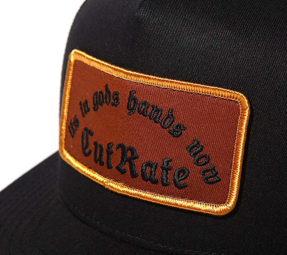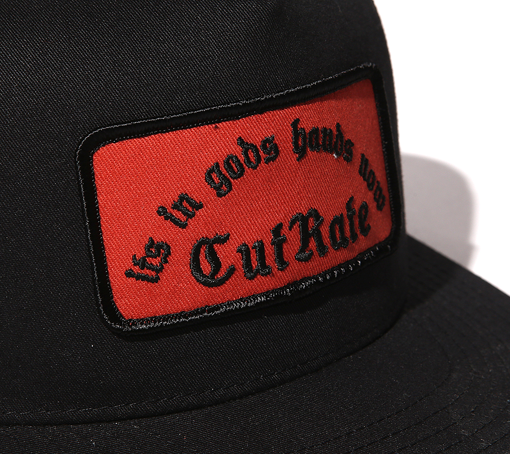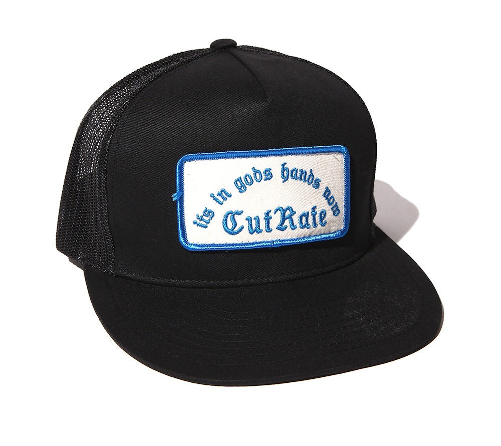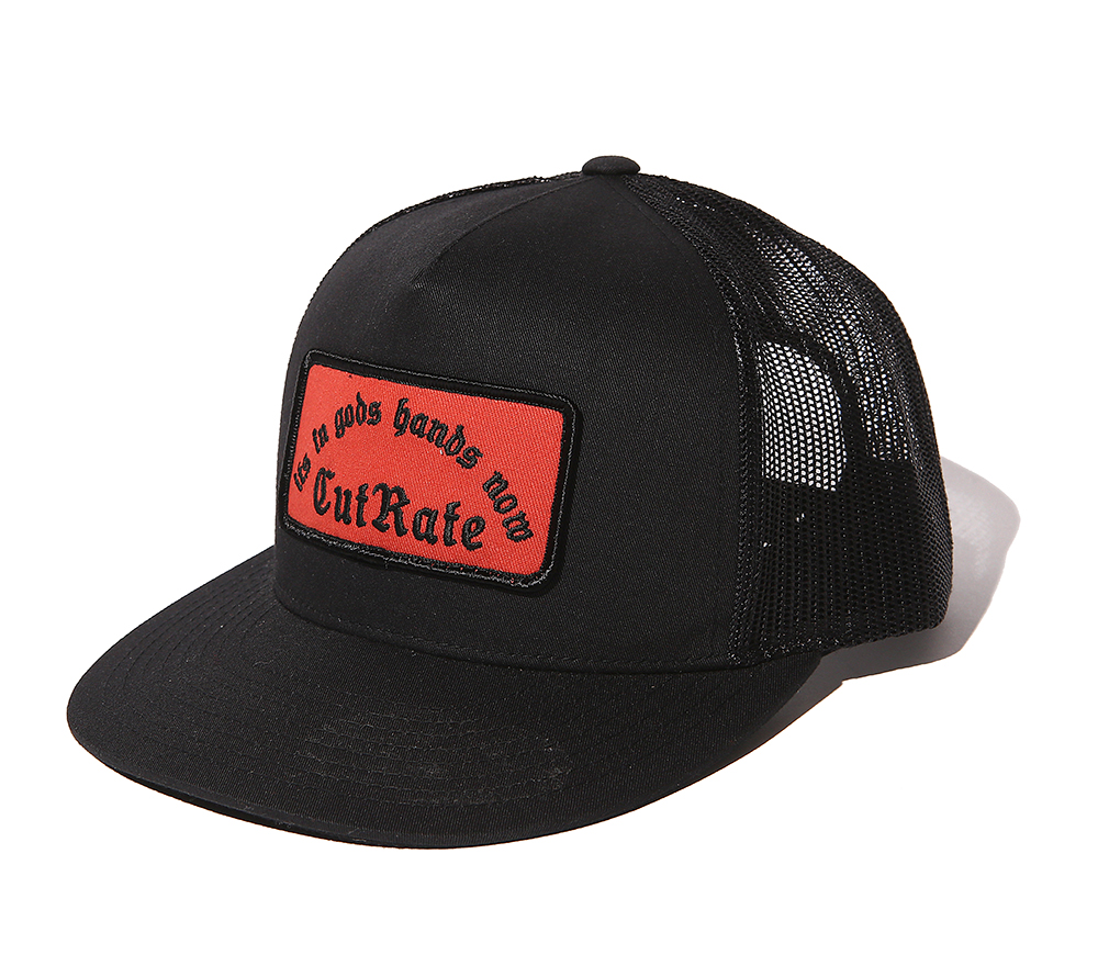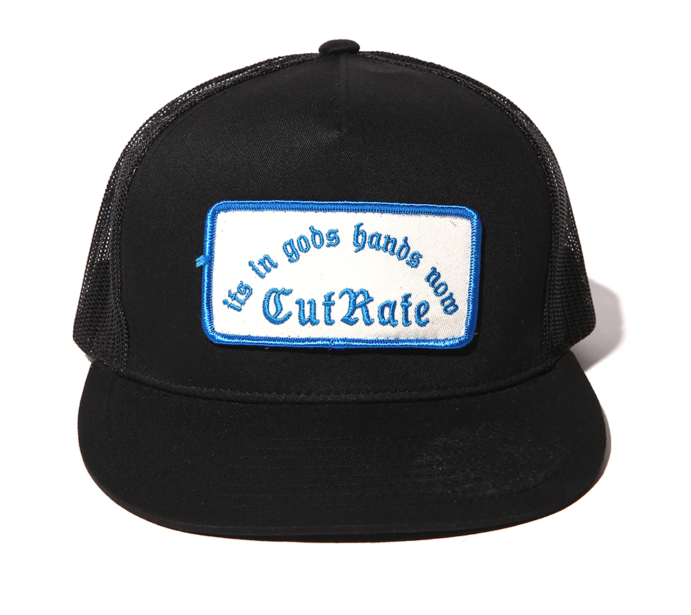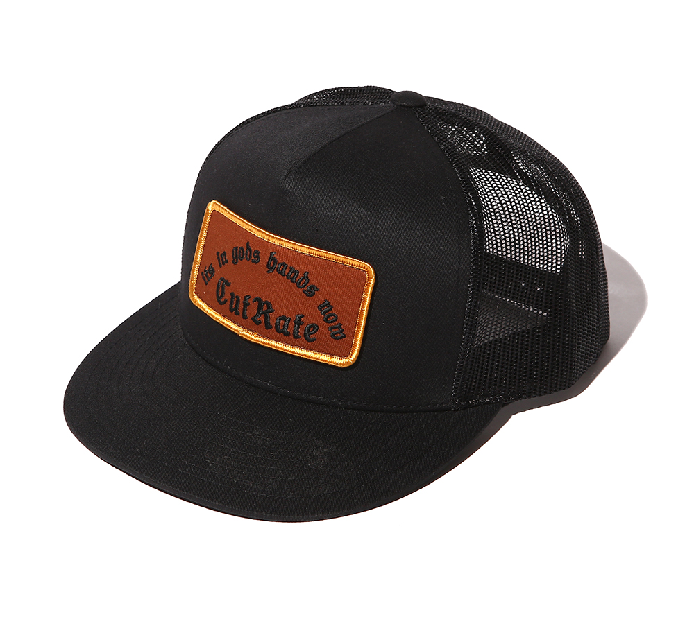 フロントにワッペンを施したメッシュCAPになります。今季はボディーのカラーはBLACKでワッペンを配色仕様でのリリースとなります。またスナップバックタイプになっていますので後被りで着用しても良いのではないでしょうか。メッシュ素材は季節感も演出出来ますし、夏のCUTRATEスタイルには欠かせないアイテムではないでしょうか。