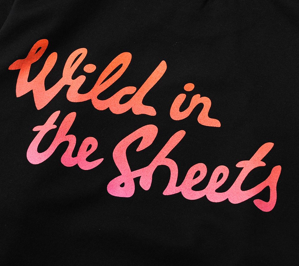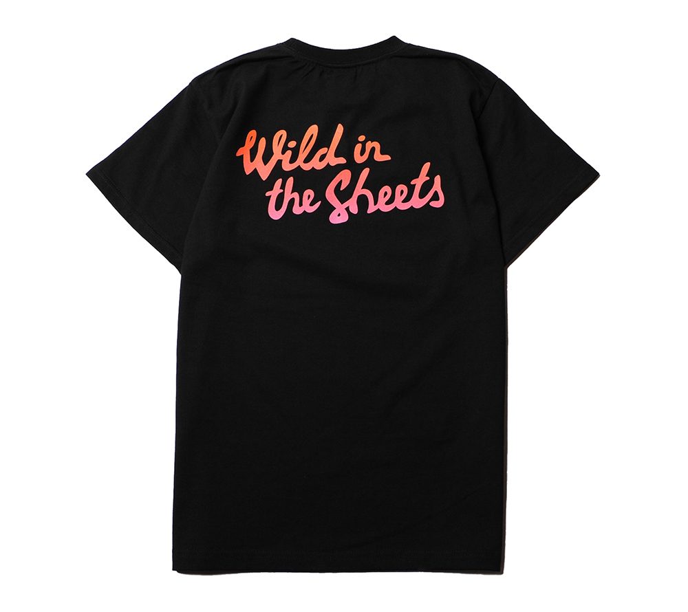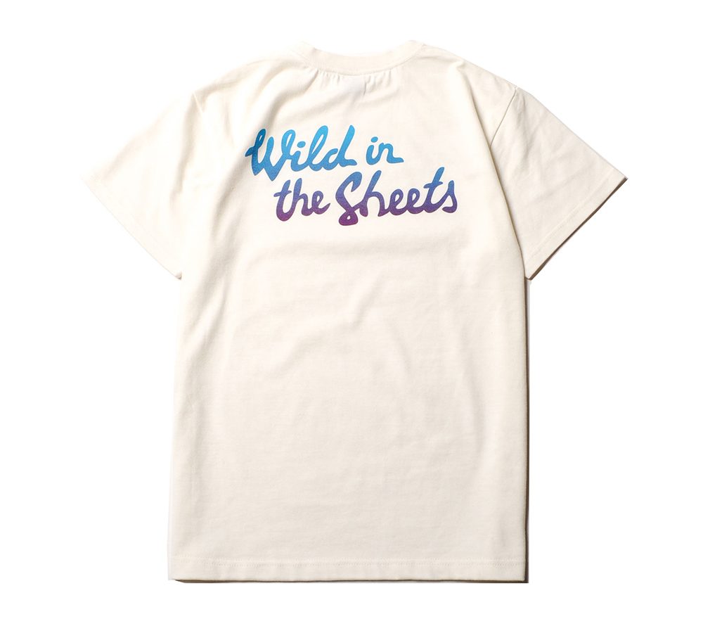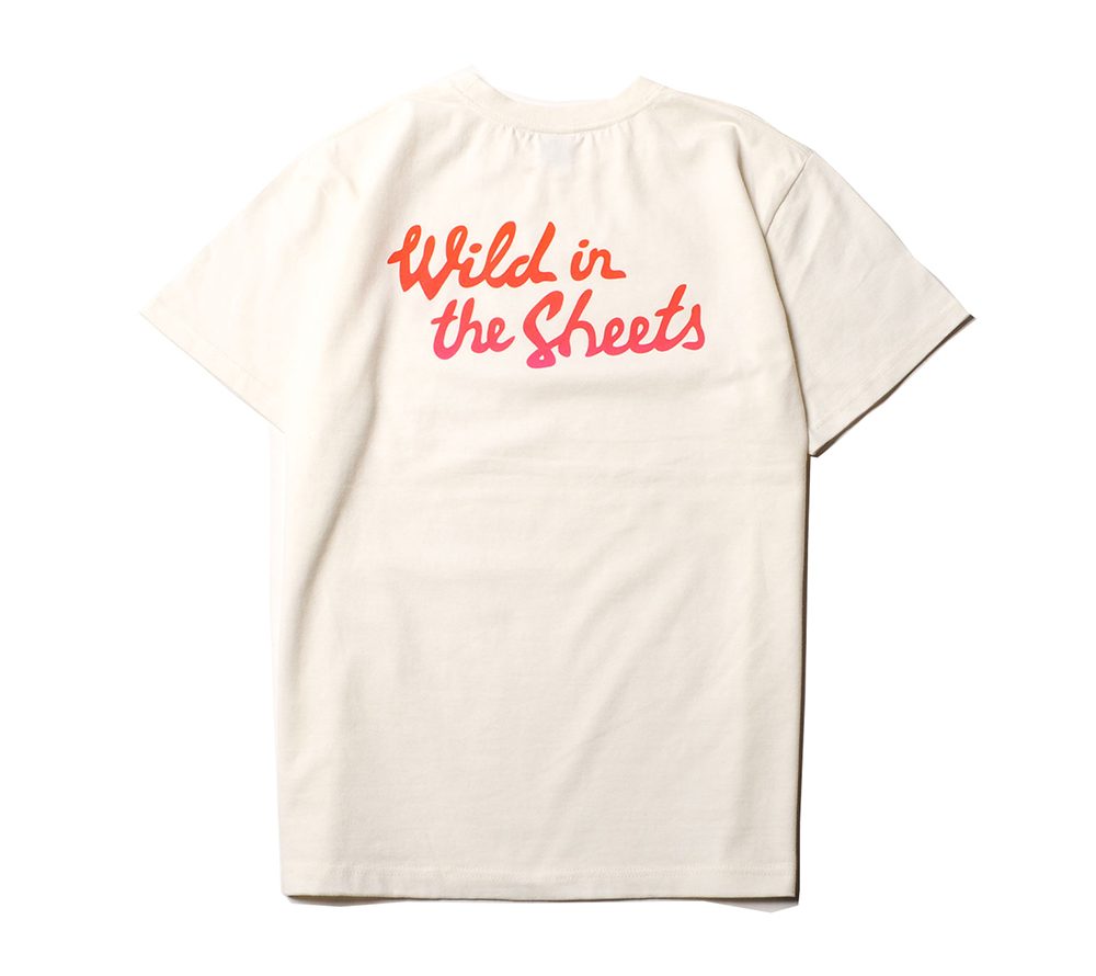 コットン100%の程よい肉厚感で製作したオリジナルTシャツです。フロント左胸、バックにプリントが入ります。CIRCLE JERKSなどバンドの曲のタイトルにもなっていて、アメリカ人の中でポピュラーな表現である"WILD IN IN THE STREET=街の荒くれ者"といった言葉をもじり、"WILD IN THE SHEETS=ベットの中の暴れん坊”といった言葉をバックに、壊れたベッドをフロントに落とし込んだ、デザイナーの遊び心が光る面白いデザインとなっています。