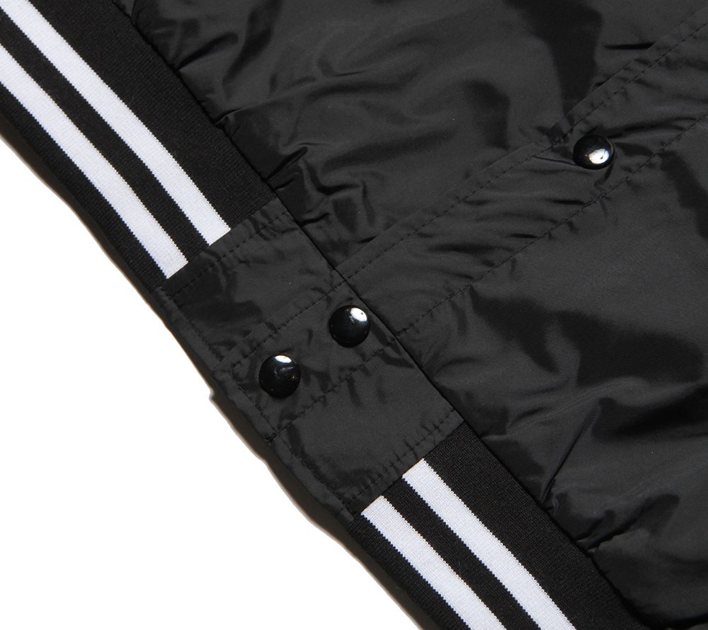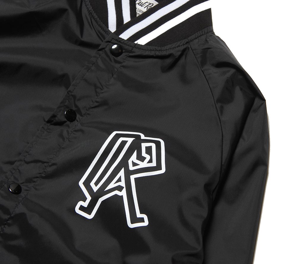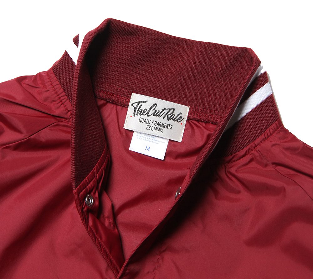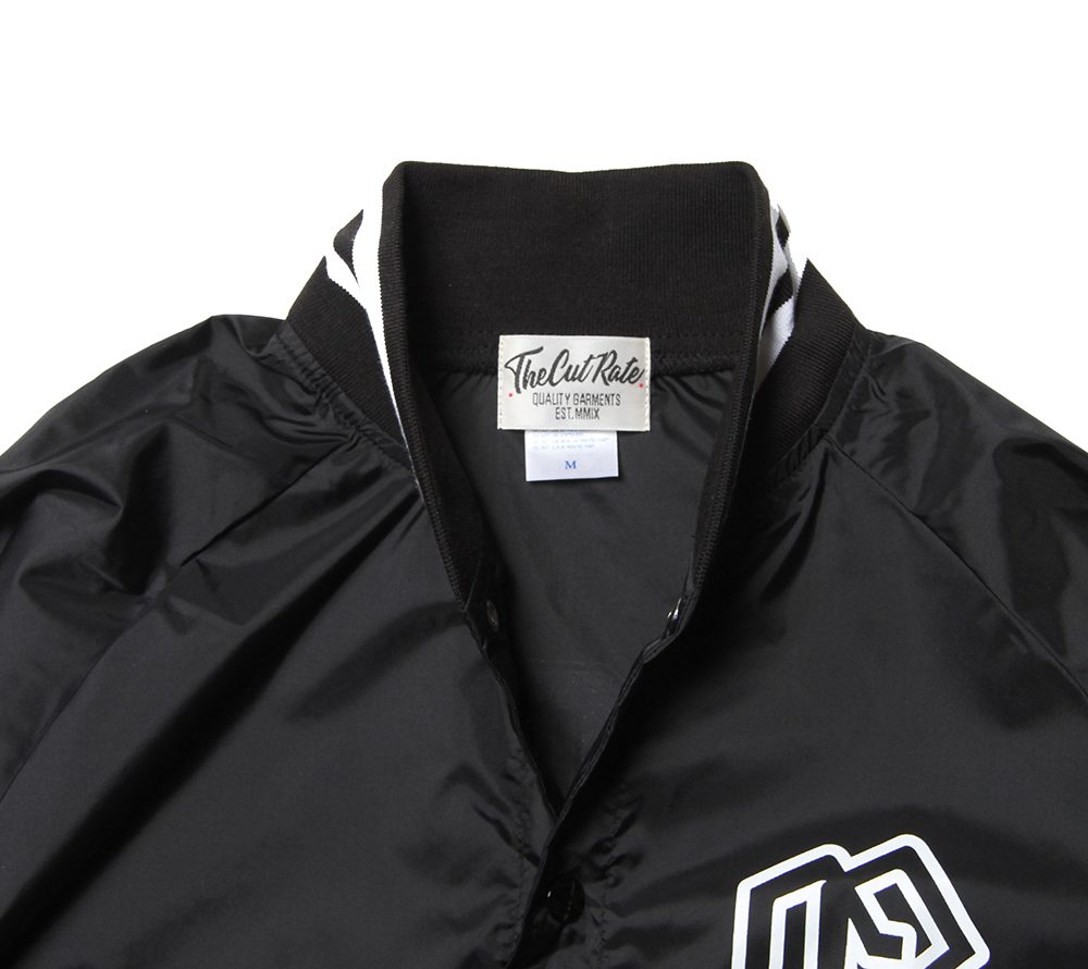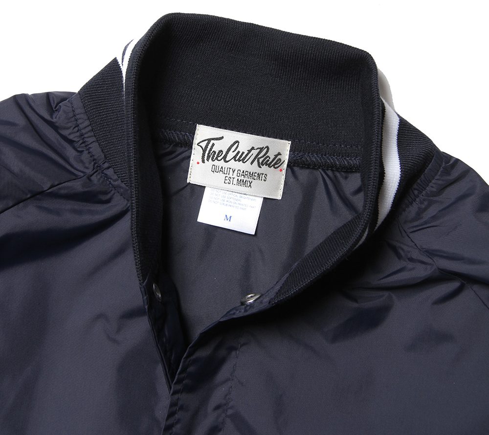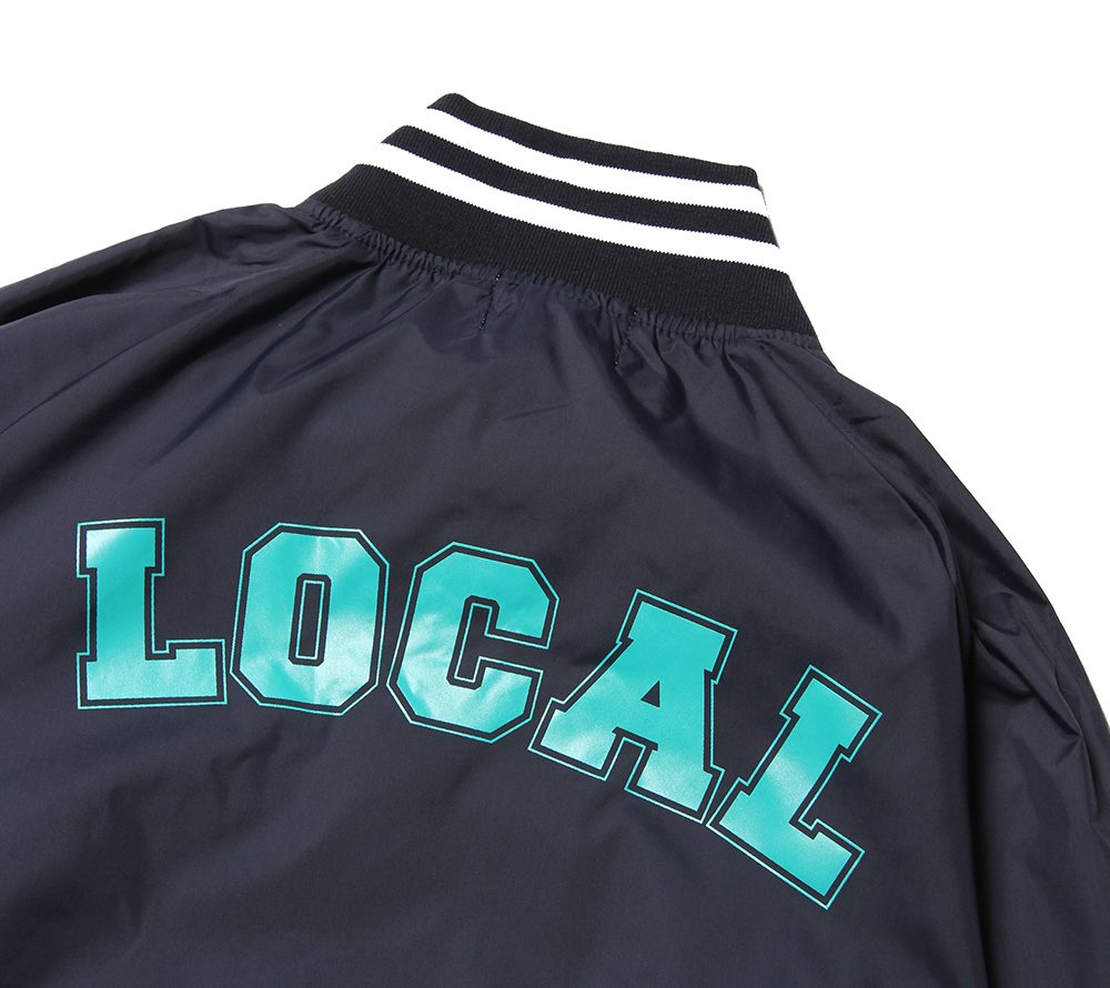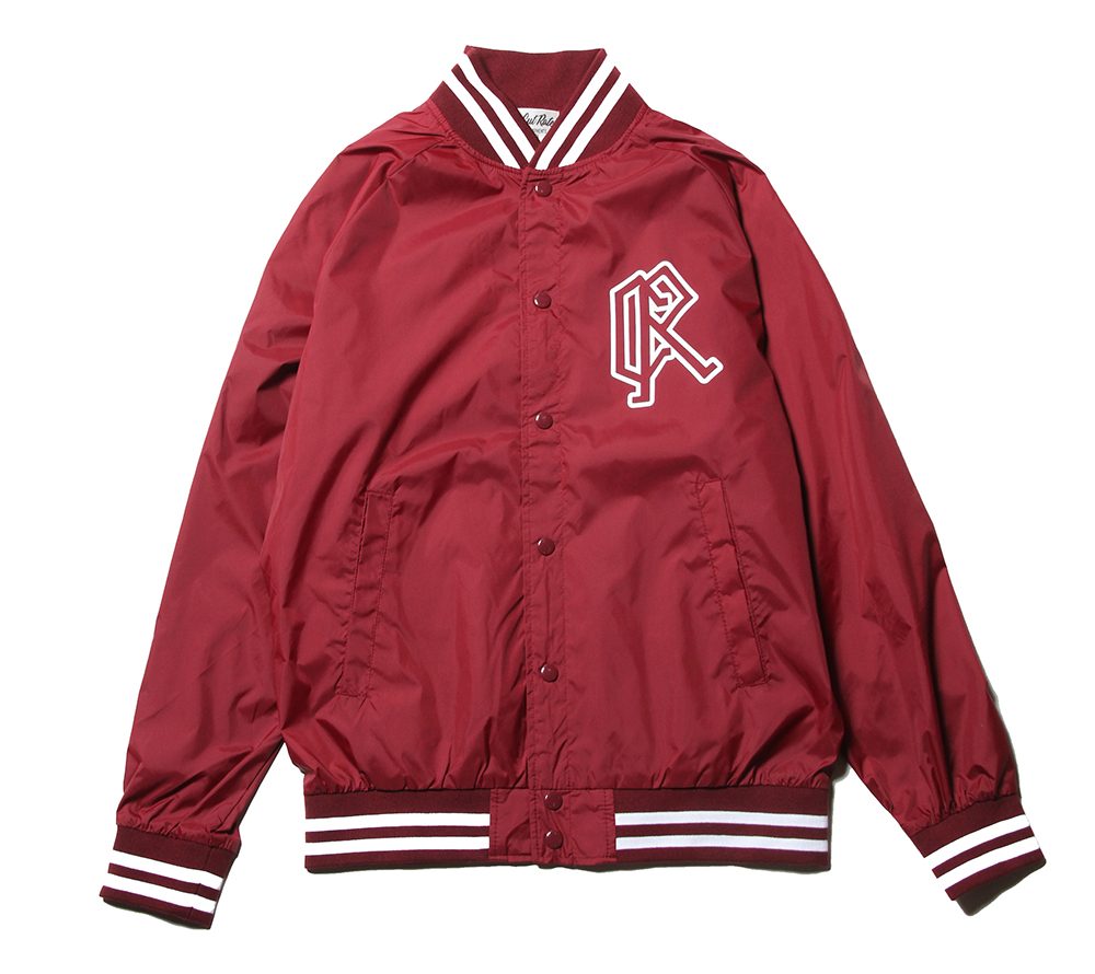 ナイロンタフタ素材を使用した、リブ付きのスタジアムジャケット。フロント左胸、バックにプリントが入ります。裏地がなく、一枚仕立てにする事で、インナー使いで楽しめる春ジャケットです。